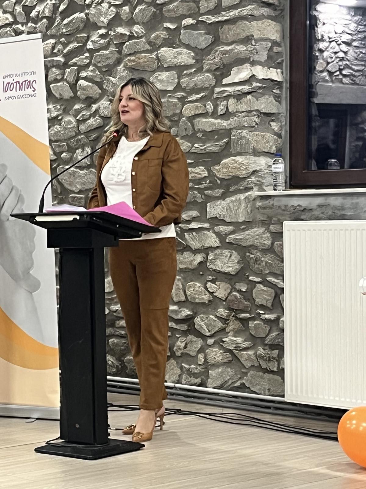 Χαιρετισμούς απηύθυναν ο Δήμαρχος Ελασσόνας κ. Ν. Γάτσας, η Αντιπεριφερειάρχης Κοινωνικής Μέριμνας και Εθελοντισμού κ. Ανδριάνα Κομήτσα, ο Αντιπεριφερειάρχης Παιδείας και Ισότητας κ. Σίμος Βασίλης και η Αντιδήμαρχος Παιδείας και Άθλησης και Πρόεδρος της Δημοτικής Επιτροπής Ισότητας κ. Βιβή Γκουγκούλη.