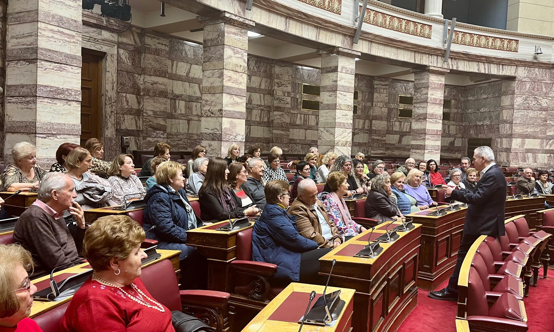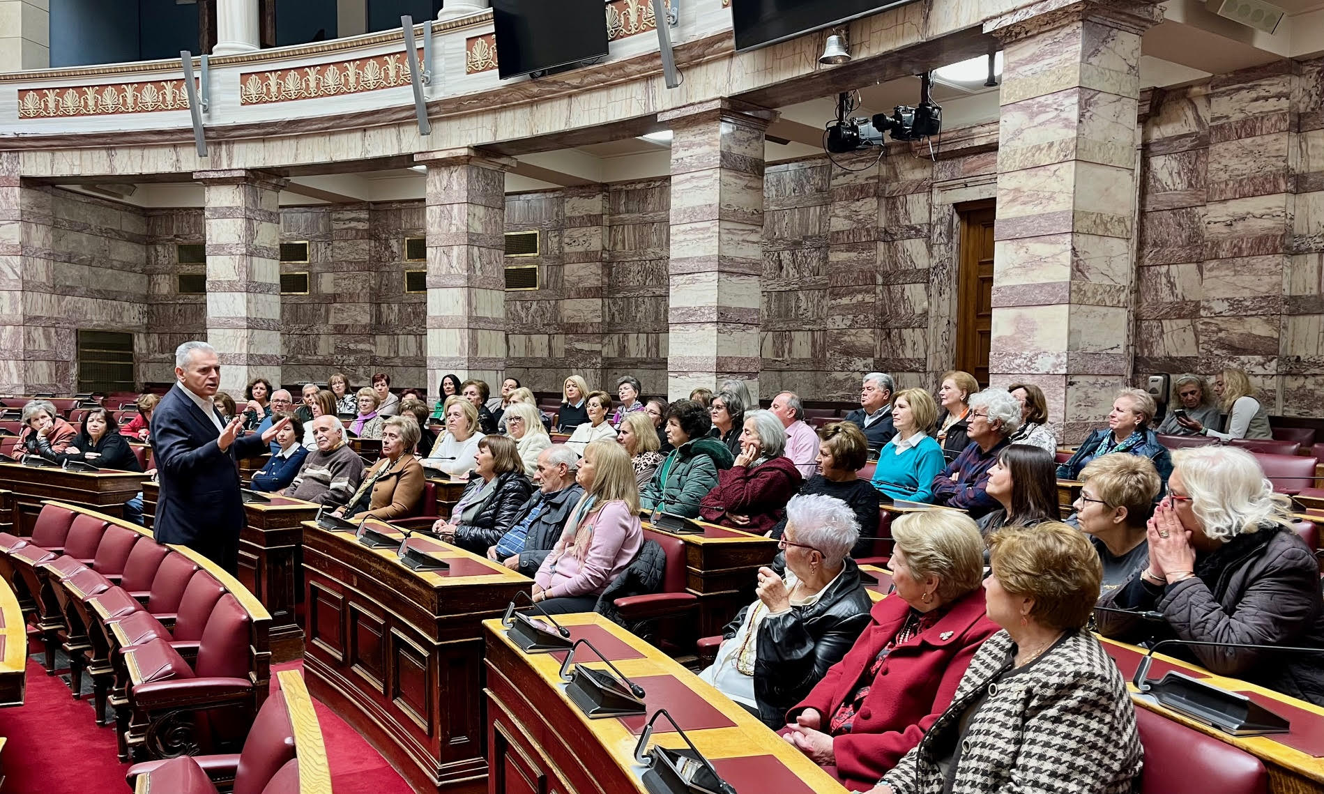 Χαρακόπουλος καλωσορίζοντας συνταξιούχους ΚΑΠΗ στη Βουλή: “Ενάρετος κύκλος με αυξήσεις σε συντάξεις και μειώσεις φόρων” (φωτό)