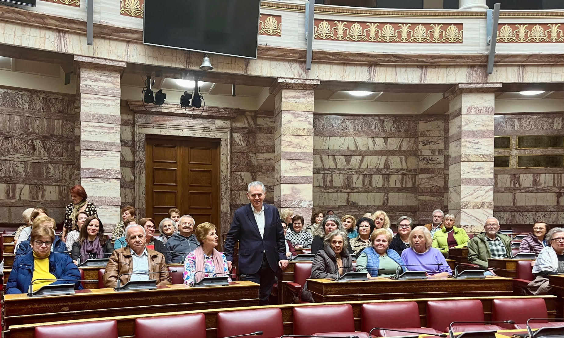 Χαρακόπουλος καλωσορίζοντας συνταξιούχους ΚΑΠΗ στη Βουλή: “Ενάρετος κύκλος με αυξήσεις σε συντάξεις και μειώσεις φόρων” (φωτό)