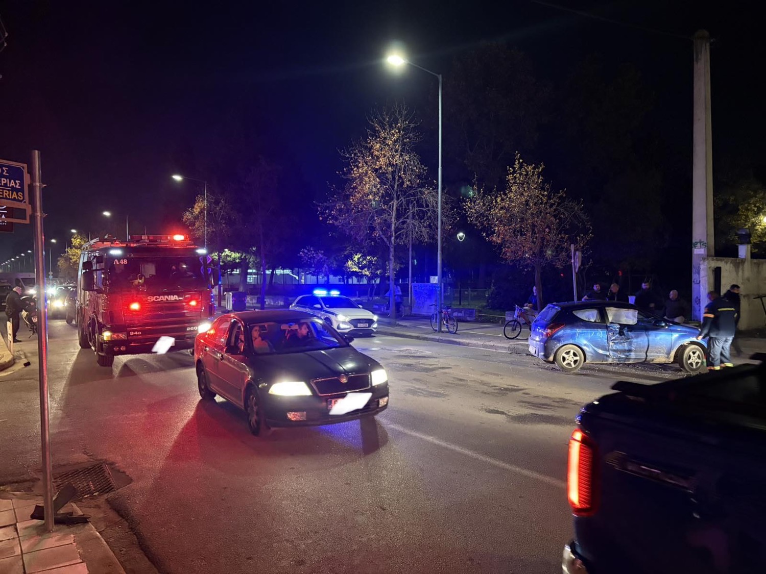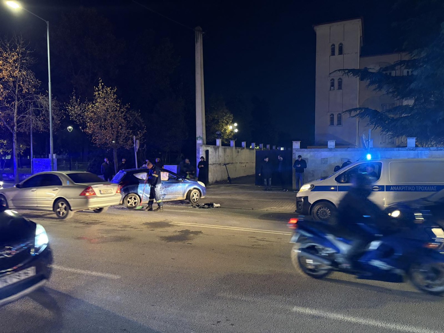 Τροχαίο ατύχημα το οποίο προήλθε από σύγκρουση αυτοκινήτου με μηχανή, έλαβε χώρα λίγο μετά τις 8 μ.μ. στη Λάρισα έξω από την Ιερά Μητρόπολη Λάρισας – Τυρνάβου.