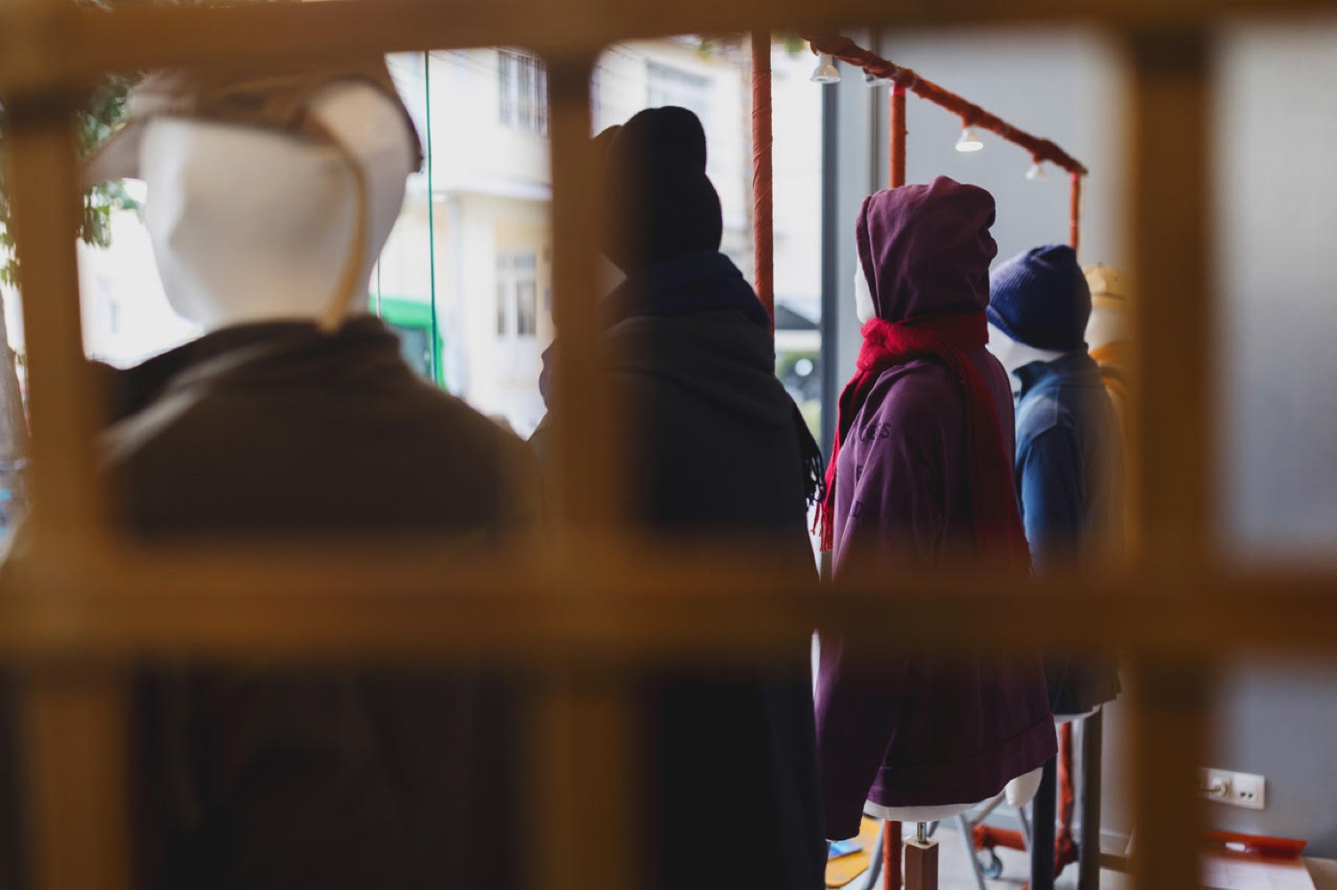 Πέντε σχολικές καρέκλες καλυμμένες από σκόνη. Πάνω τους, σχολικά αντικείμενα σε εγκατάλειψη – τετράδια που δεν γράφτηκαν ποτέ, μολύβια που δεν ξύστηκαν, βιβλία που δεν ανοίχτηκαν. Πίσω από κάθε άδεια καρέκλα στέκεται μια κούκλα – ένα παιδί που έμεινε έξω από την τάξη.