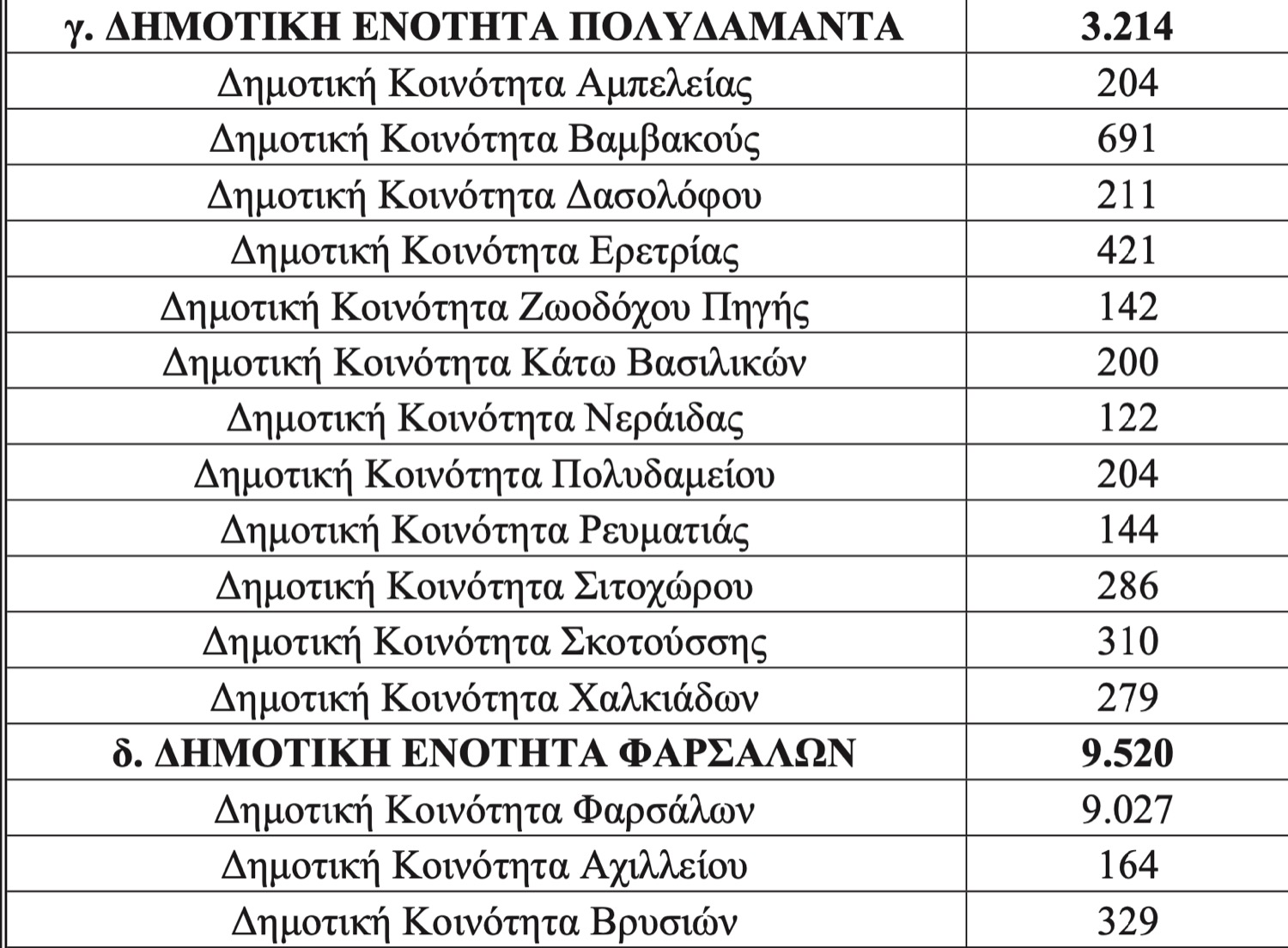 Αυτή είναι η αναλυτική καταγραφή των Δήμων και Κοινοτήτων της Λάρισας με βάση την τελευταία απογραφή πληθυσμού – Όλα τα στοιχεία