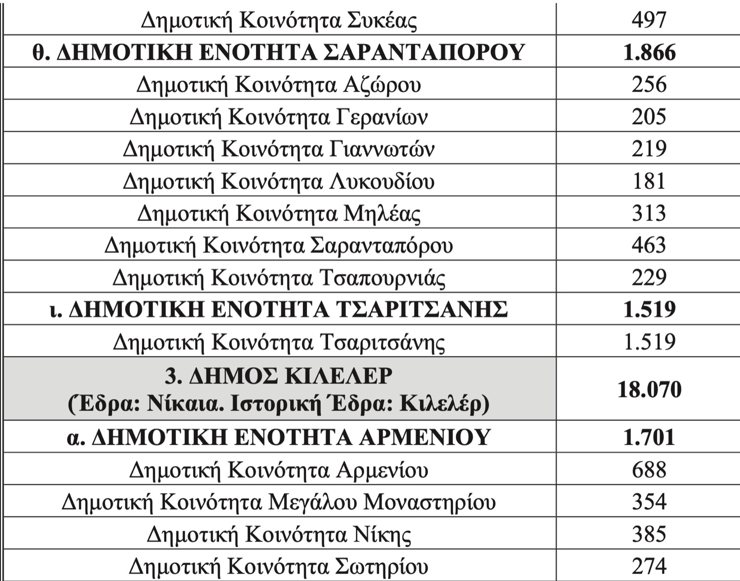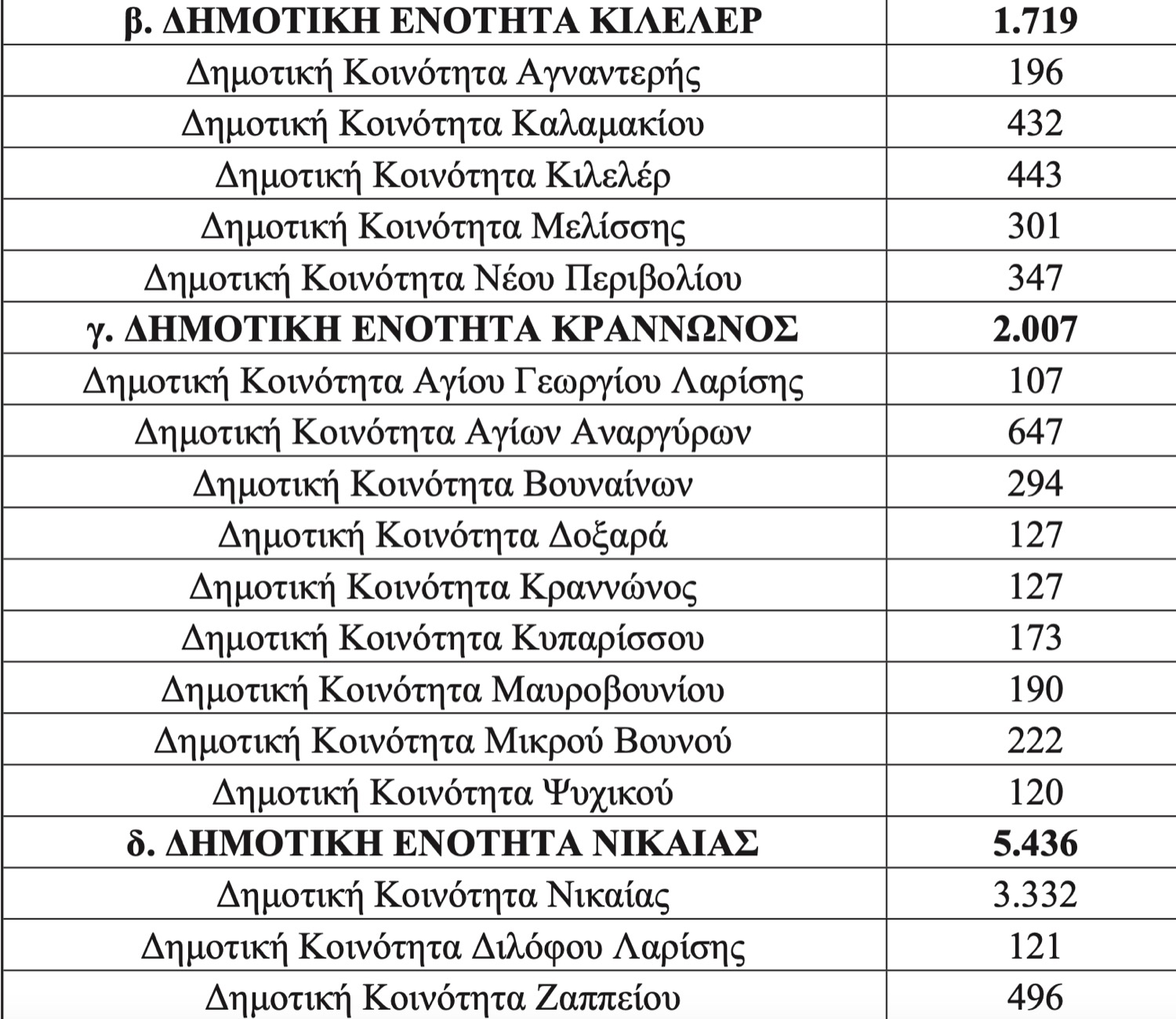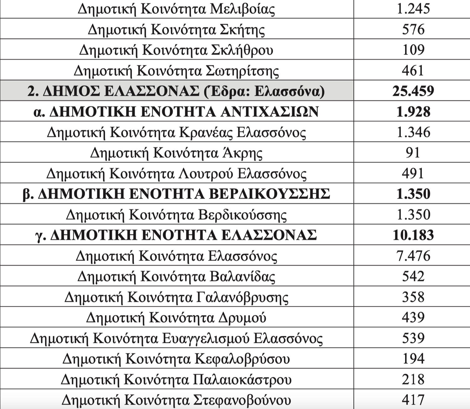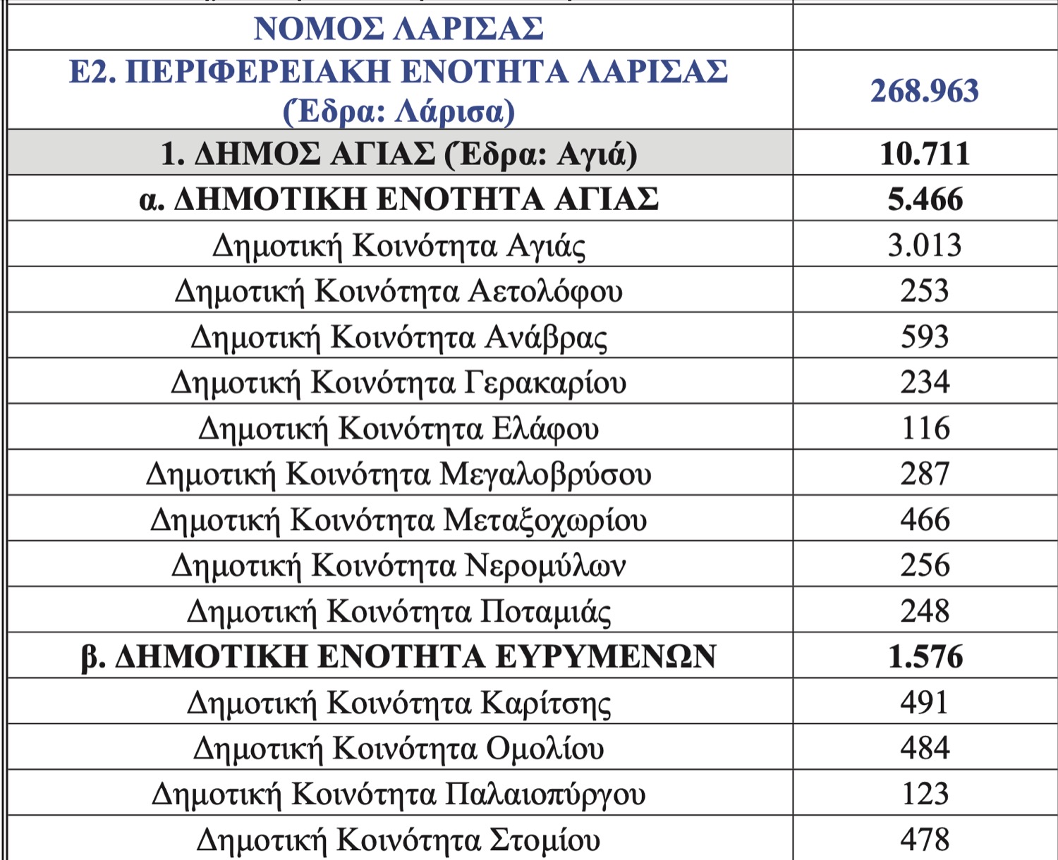 Αυτή είναι η αναλυτική καταγραφή των Δήμων και Κοινοτήτων της Λάρισας με βάση την τελευταία απογραφή πληθυσμού – Όλα τα στοιχεία