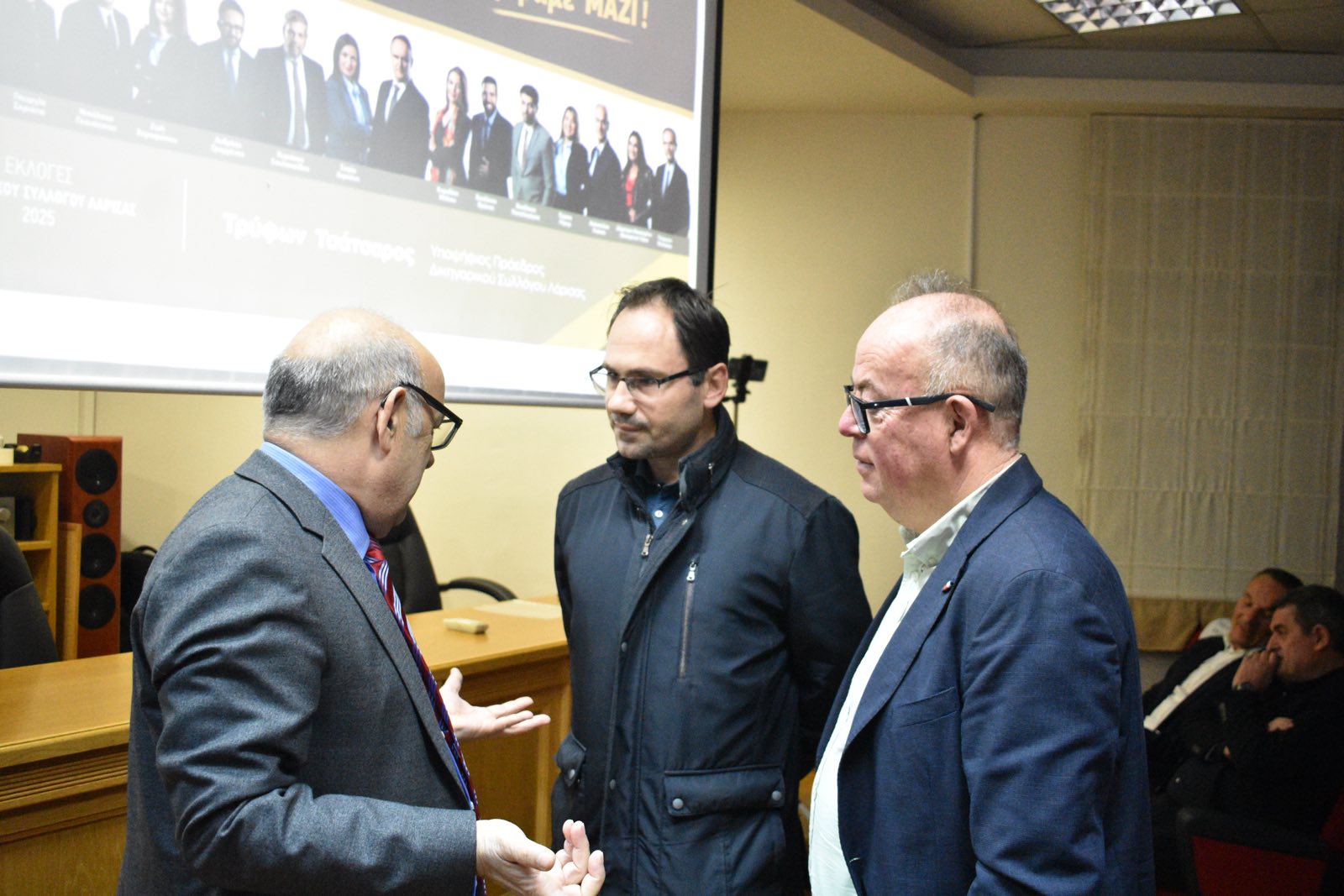 Κλείνοντας την ομιλία του, ο Πρόεδρος του Δικηγορικού Συλλόγου Λάρισας απηύθυνε θερμή ευχαριστία στους παρευρισκόμενους και κάλεσε τους συναδέλφους να συμμετάσχουν ενεργά στη διαδικασία των εκλογών της Κυριακής.