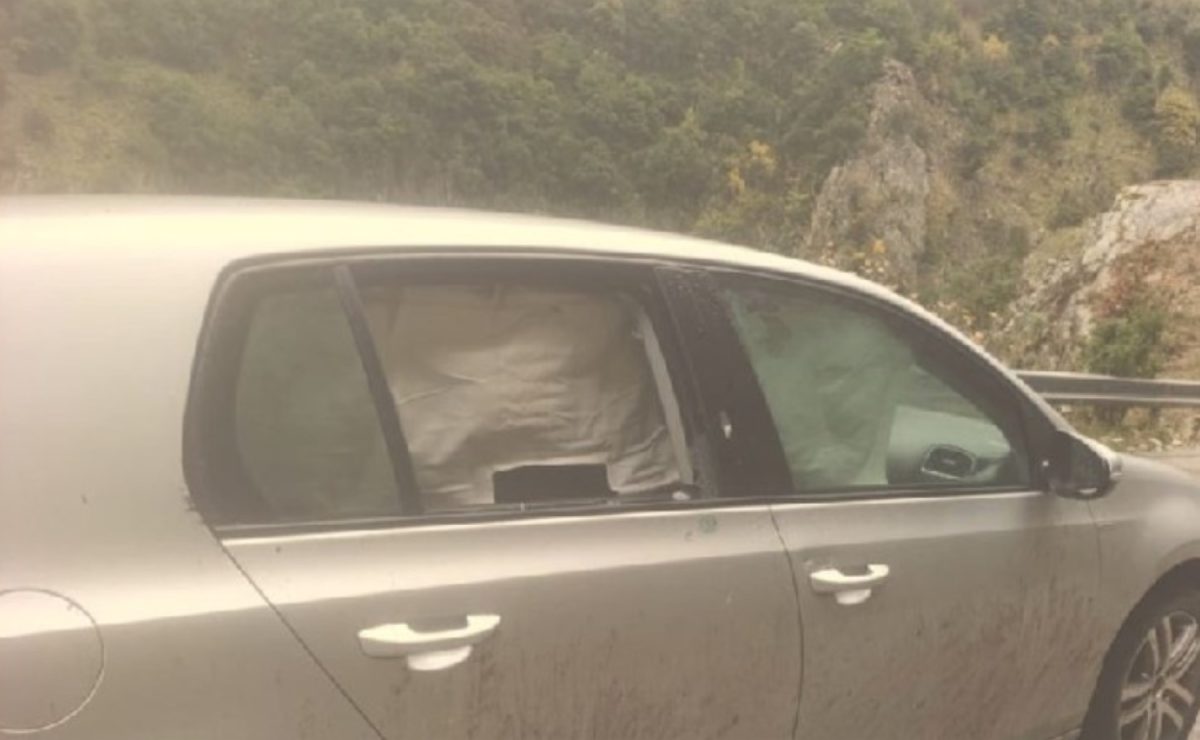 Ευτυχώς όμως και για λίγα εκατοστά, οι πέτρες δεν τραυμάτισαν τους επιβαίνοντας, που δεν κατάλαβαν από πού τους ήρθε κα τι τους χτύπησε.