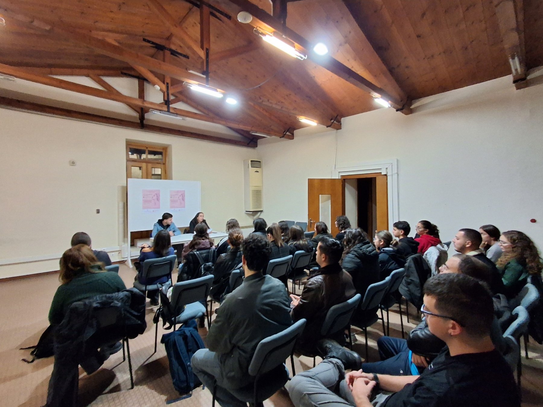 Η συζήτηση που ακολούθησε ήταν ιδιαίτερα ζωντανή, με τις φοιτήτριες να μοιράζονται σκέψεις και προβληματισμούς σχετικά με τη βία που εμφανίζεται στο πανεπιστήμιο, στον χώρο εργασίας και στο διαδίκτυο. Ιδιαίτερο βάρος δόθηκε στη σύνδεση της βίας με την ανισότιμη θέση της γυναίκας στην εκμεταλλευτική κοινωνία. Τονίστηκε ότι η αντιμετώπιση της βίας δεν μπορεί να περιοριστεί στη νομική αυστηροποίηση ή στη μεμονωμένη καταγγελία, αλλά απαιτεί συνολική κοινωνική προστασία, σταθερή δουλειά με δικαιώματα, δημόσιες και δωρεάν δομές στήριξης, ουσιαστική παιδική προστασία και μέτρα πρόληψης μέσα από την εκπαίδευση.