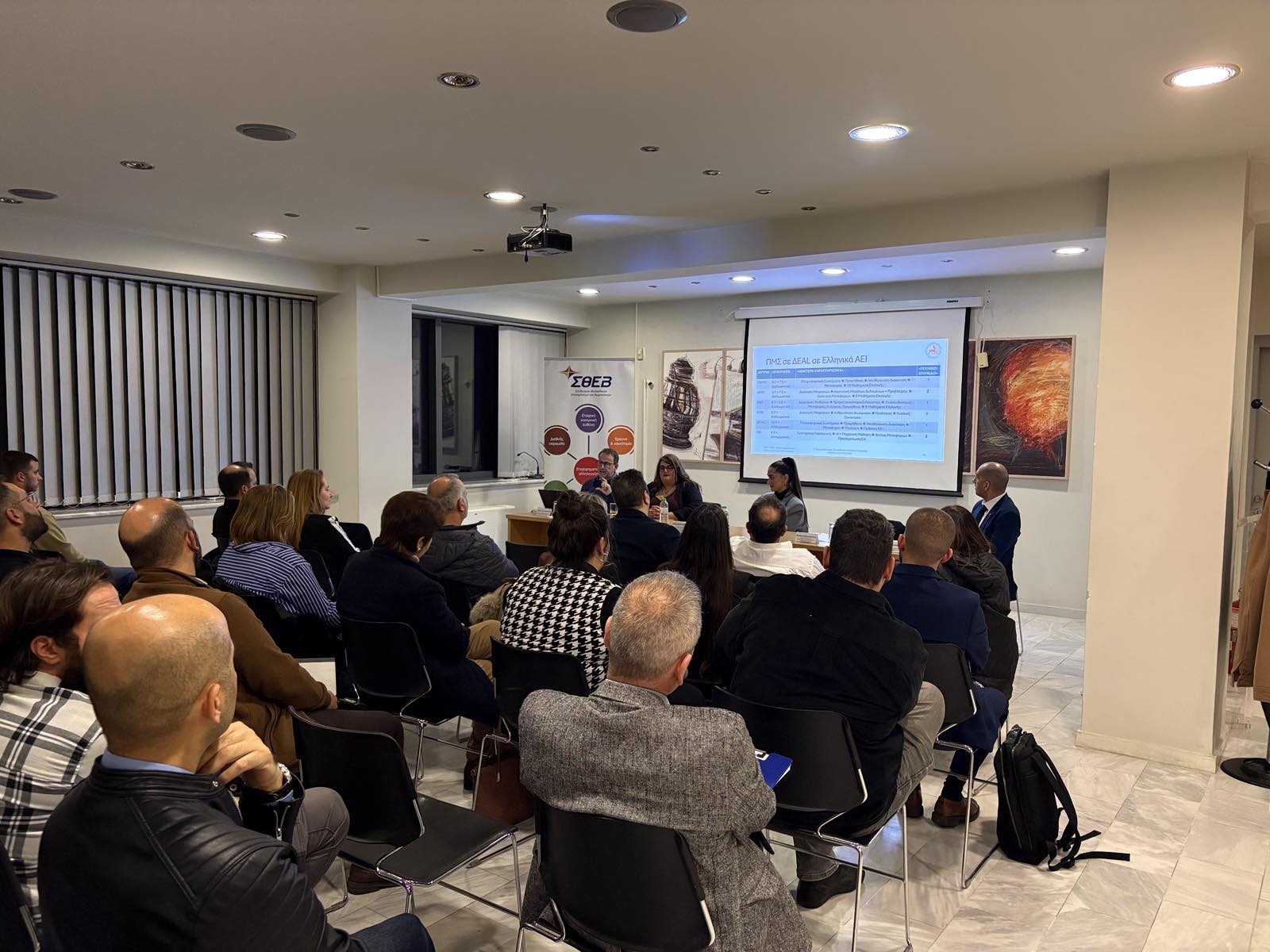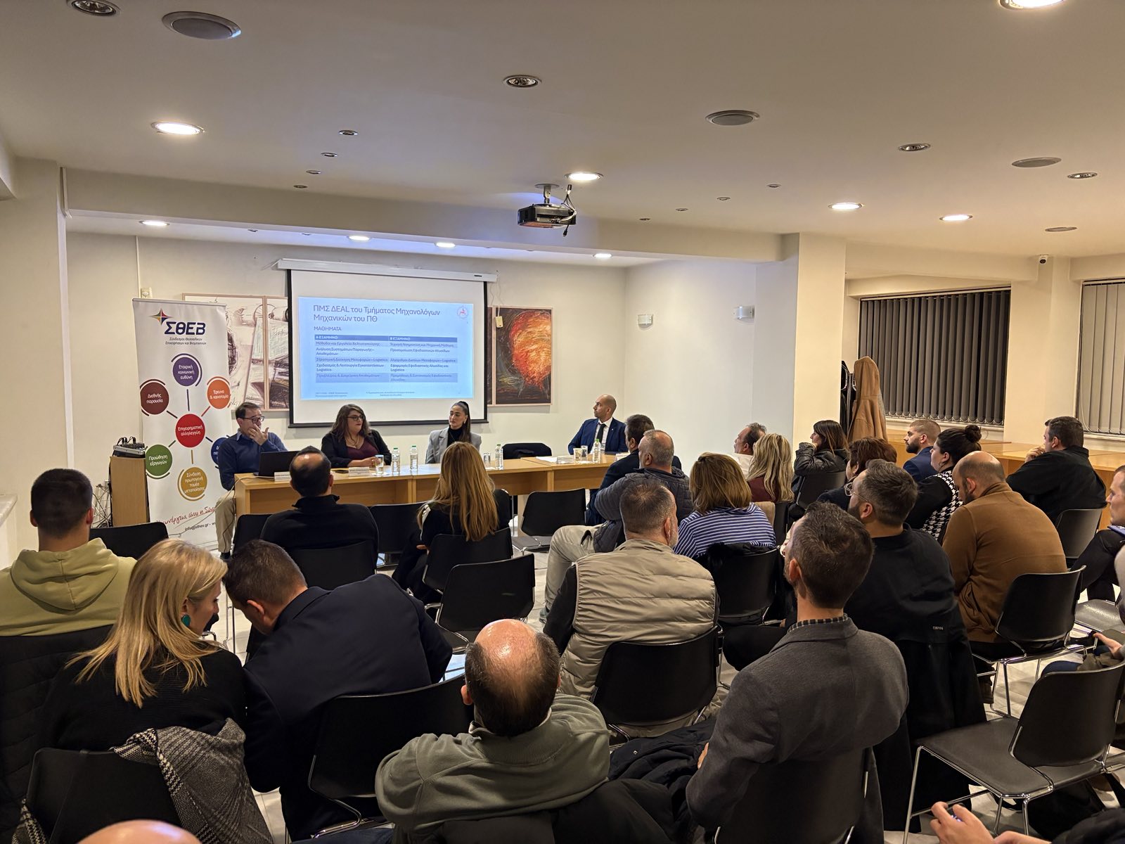 Με συμμετοχή και ζωηρό ενδιαφέρον από επαγγελματίες του κλάδου πραγματοποιήθηκε η εκδήλωση του ΣΘΕΒ με θέμα «Τεχνολογικός μετασχηματισμός στα logistics: Προκλήσεις και σύγχρονες λύσεις για επιχειρήσεις και εργαζόμενους», σήμερα Παρασκευή 28 Νοεμβρίου στις εγκαταστάσεις του Συνδέσμου. Σε μια περίοδο όπου ο κλάδος των logistics βρίσκεται στο επίκεντρο ραγδαίων τεχνολογικών και επιχειρησιακών αλλαγών, η εκδήλωση ανέδειξε την ανάγκη συνεχούς προσαρμογής και εκπαίδευσης τόσο για τις επιχειρήσεις όσο και για τους εργαζομένους.