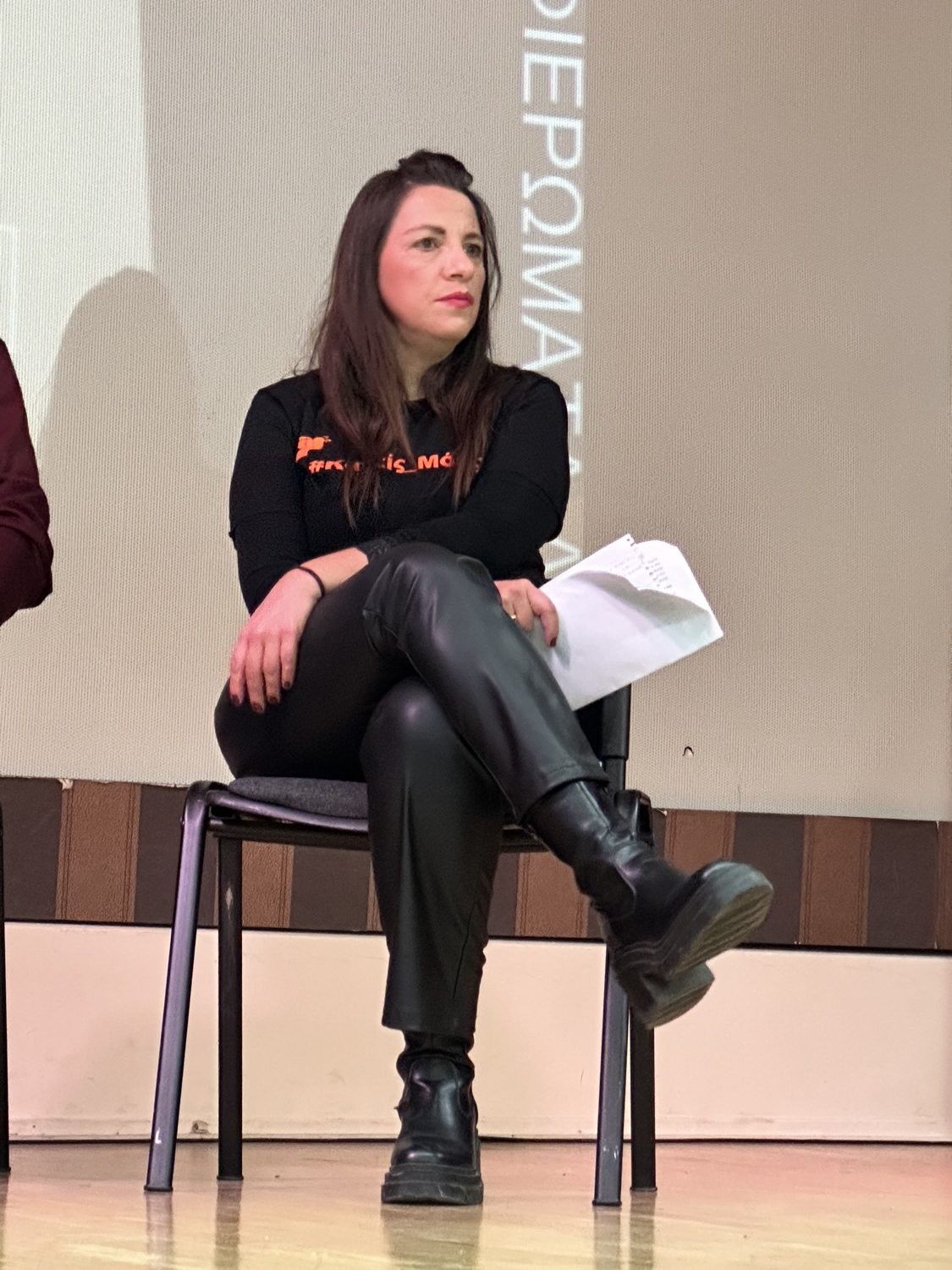Τη συζήτηση συντόνισε και παρουσίασε η Γεωργία Σβάρνα, Αντιπρόεδρος του Δικτύου «Κανείς_Μόνος», ανοίγοντας έναν ζωντανό διάλογο με το κοινό και δίνοντας τον τόνο της βραδιάς με τη φράση-σύνθημα : μηδενική ανοχή στη βία – καμία γυναίκα στη σιωπή.