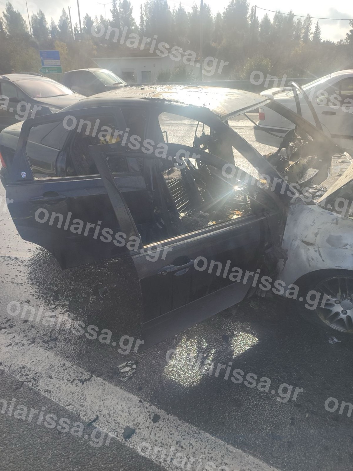 Συναγερμός σήμανε σε Πυροσβεστική και Αστυνομία αργά το πρωί του Σαββάτου καθώς ένα αυτοκίνητο τυλίχθηκε στις φλόγες επί της οδού Βόλου, κάτω από την γέφυρα της εθνικής οδού και λίγο πριν τον κυκλικό κόμβο για τον Πλατύκαμπο.