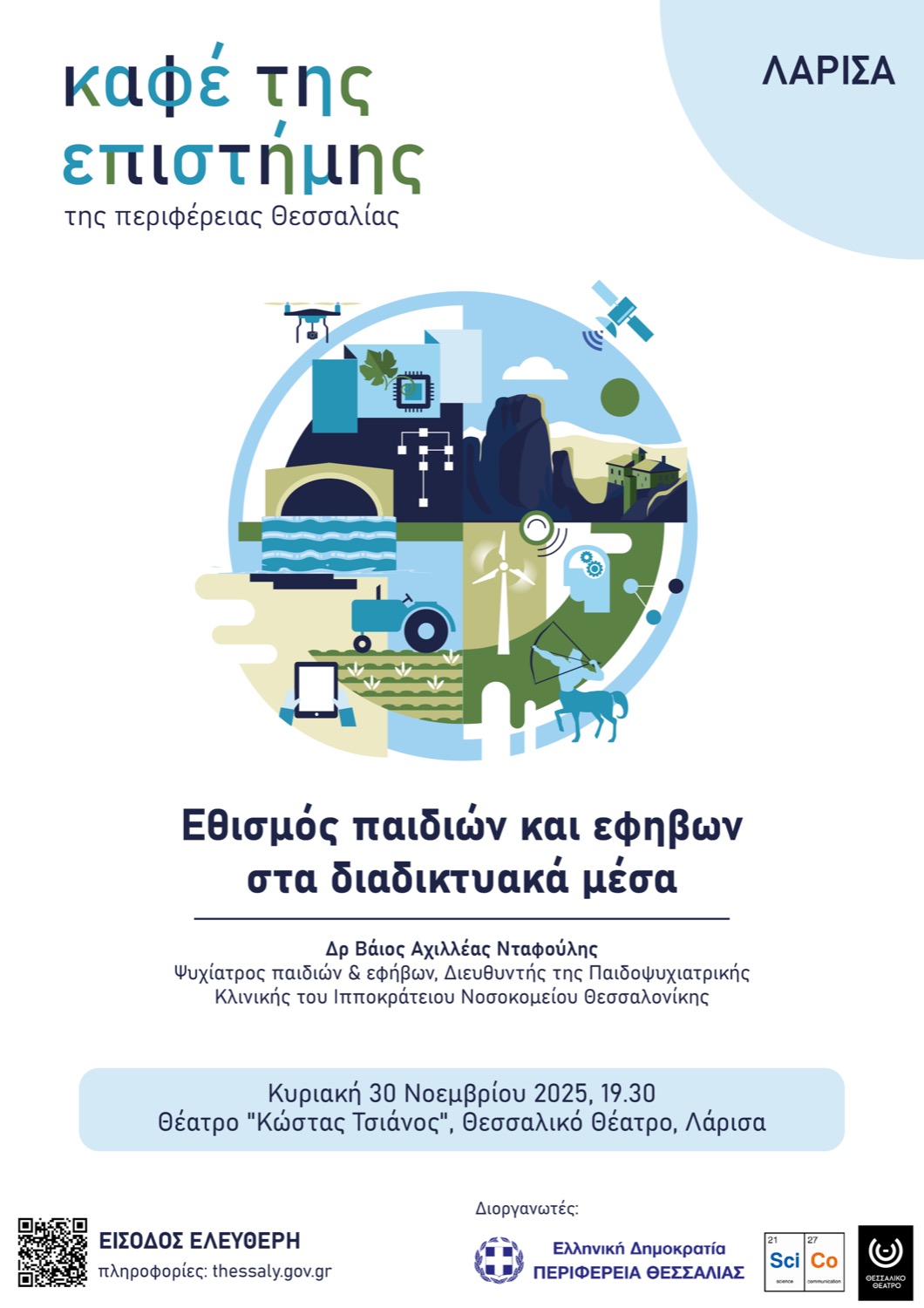 Το «Καφέ της Επιστήμης της Περιφέρειας Θεσσαλίας» συνεχίζεται στη Λάρισα με ομιλία του παιδοψυχιάτρου Δρ. Βαΐου Αχιλλέα Νταφούλη
