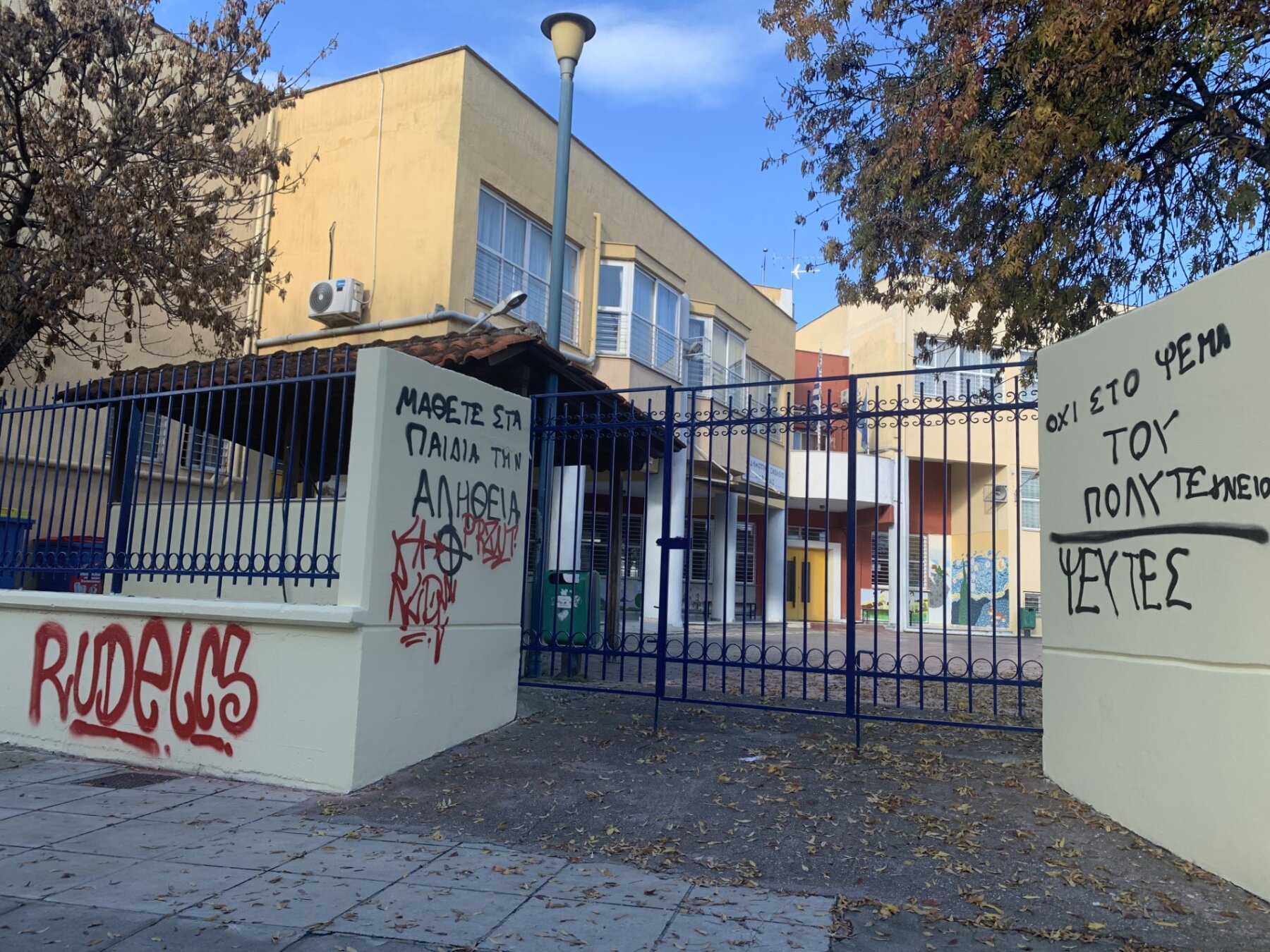 Ντροπή προκαλούν οι πράξεις στις οποίες προχώρησαν άγνωστοι που βανδάλισαν την είσοδο σχολείου στη Λάρισα.