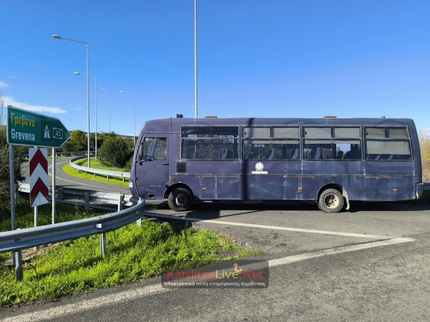 Κλούβες των ΜΑΤ έχουν κλείσει τις εισόδους και εξόδους του ανισόπεδου κόμβου του αυτοκινητόδρομου Ε-65, προκειμένου να αποτρέψουν την πρόσβαση στους διαδηλωτές.