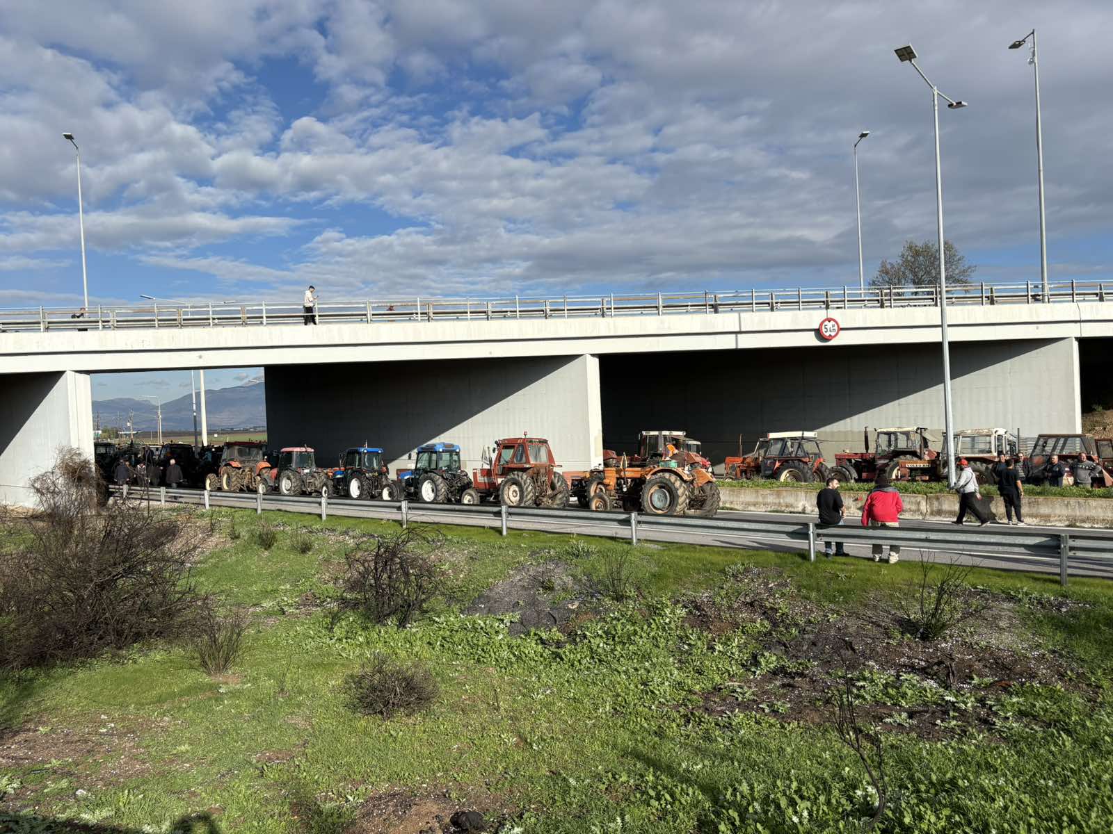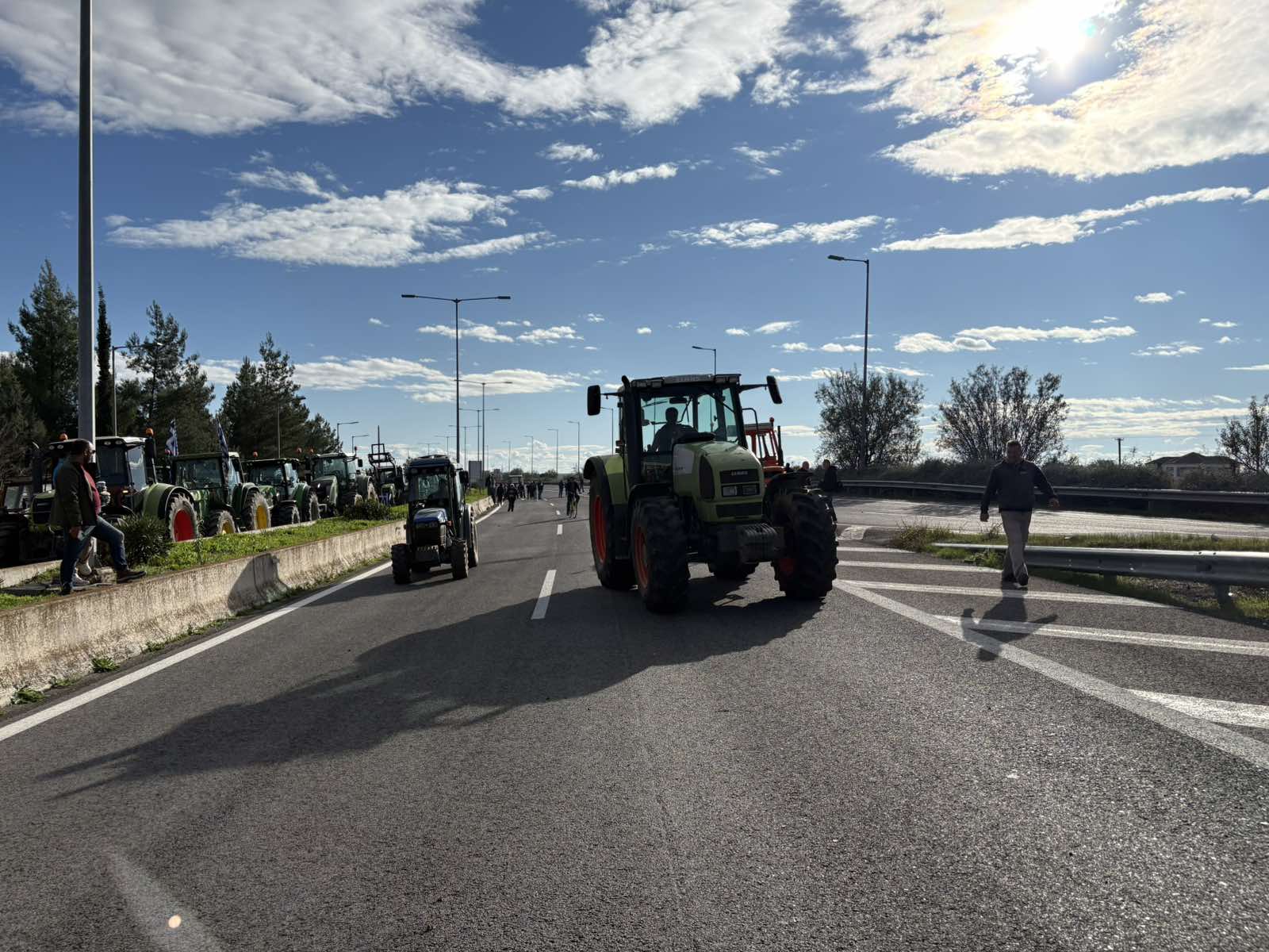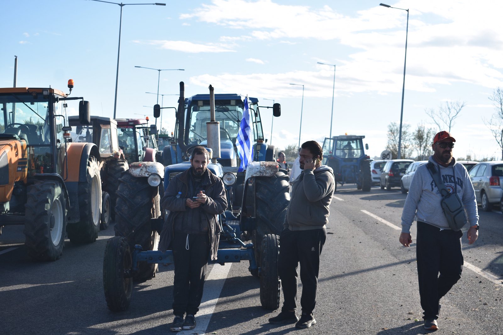 Εκατοντάδες τρακτέρ έχουν κλείσει τον δρόμο στον κόμβο της Νίκαιας. Στο σημείο παραμένουν αυξημένες αστυνομικές δυνάμεις με το κλίμα να είναι ακόμη αρκετά έντονο.