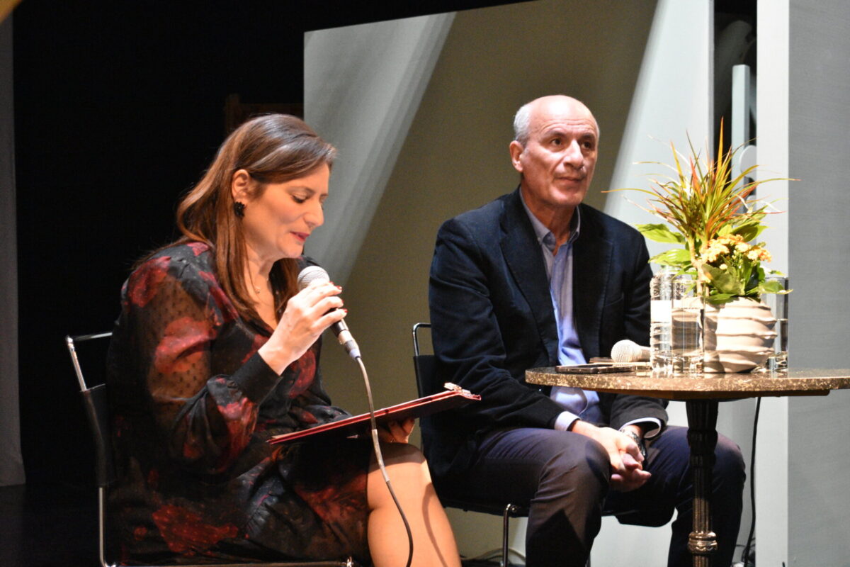 Ο Πρόεδρος του Θεσσαλικού Θεάτρου και Αντιδήμαρχος Τουρισμού και Εξωστρέφειας κ. Φώτης Τζατζάκης στον σύντομο χαιρετισμό του επεσήμανε πως “χαιρόμαστε πάρα πολύ που φιλοξενούμε αυτή την ομιλία εδώ στο θέατρό μας, το Θεσσαλικό Θέατρο εδώ και 50 χρόνια αποτελεί τον φάρο των περιφερειακών θεάτρων σε όλη την Ελλάδα και είναι τιμή μας να βρισκόμαστε στο τιμόνι του και σαν δημοτική αρχή αλλά και ως διοικητικό συμβούλιο καθώς αυτό κλείνει τον μισό αιώνα ζωής και χαιρόμαστε πάντα όταν έρχονται τέτοιες υπέροχες εκδηλώσεις σαν τη σημερινή”.