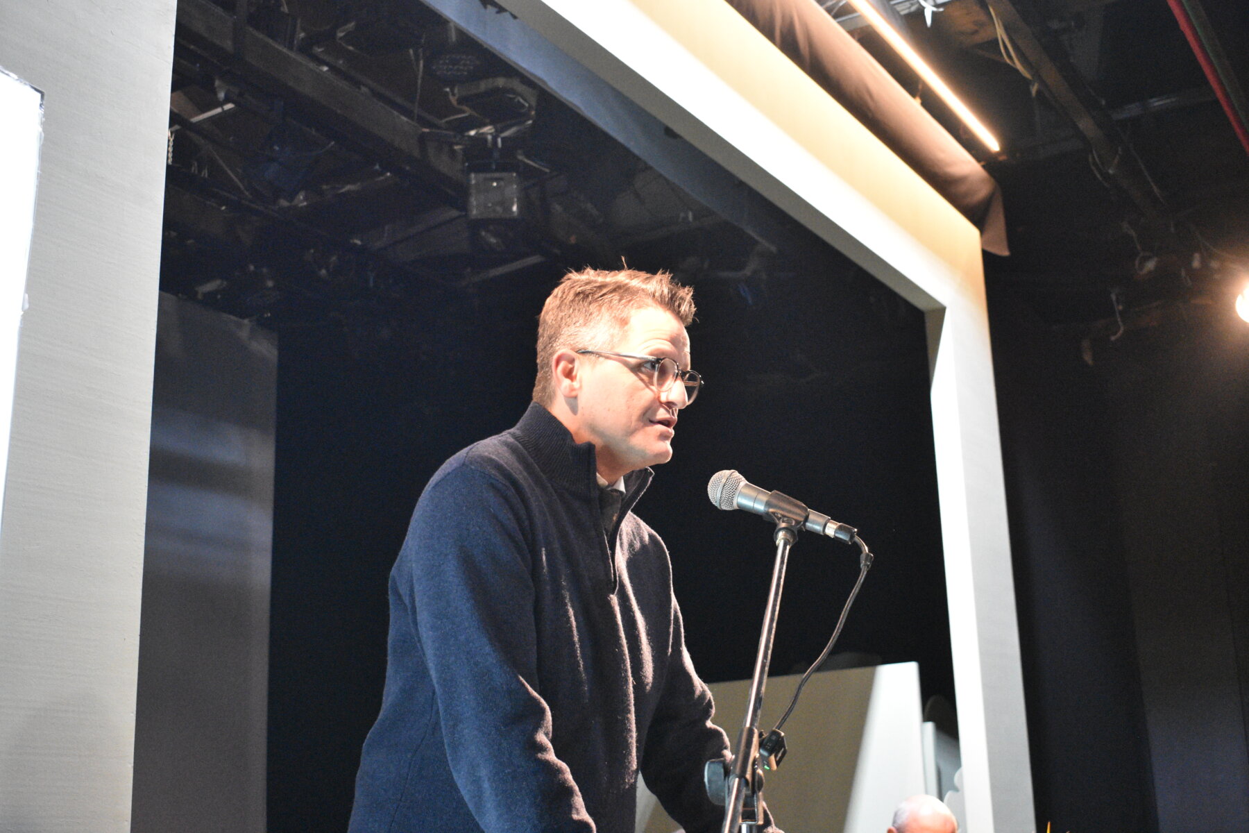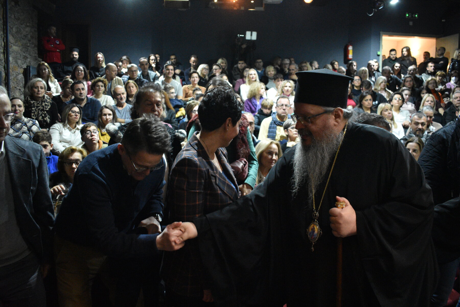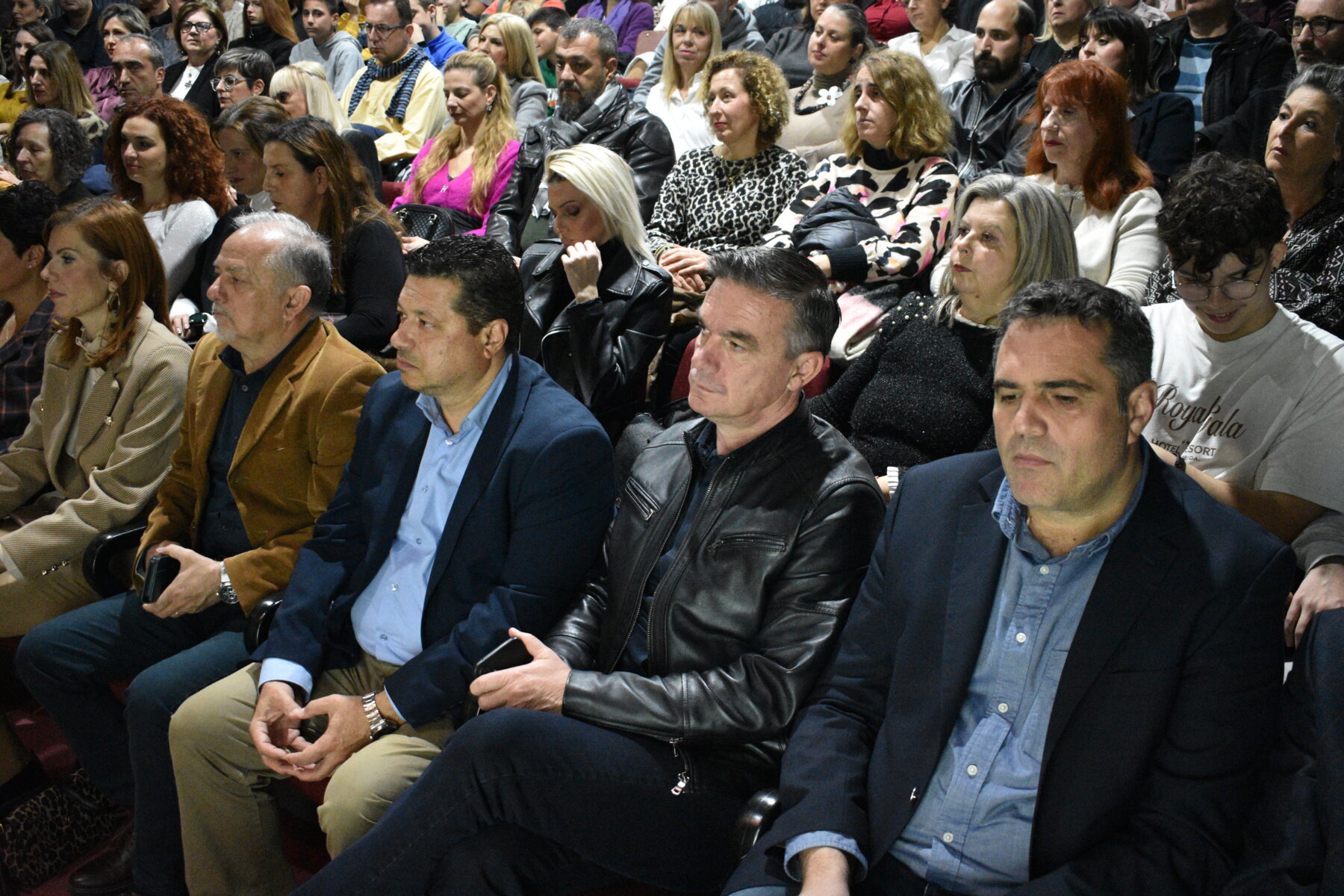 Ο Πρόεδρος του Θεσσαλικού Θεάτρου και Αντιδήμαρχος Τουρισμού και Εξωστρέφειας κ. Φώτης Τζατζάκης στον σύντομο χαιρετισμό του επεσήμανε πως “χαιρόμαστε πάρα πολύ που φιλοξενούμε αυτή την ομιλία εδώ στο θέατρό μας, το Θεσσαλικό Θέατρο εδώ και 50 χρόνια αποτελεί τον φάρο των περιφερειακών θεάτρων σε όλη την Ελλάδα και είναι τιμή μας να βρισκόμαστε στο τιμόνι του και σαν δημοτική αρχή αλλά και ως διοικητικό συμβούλιο καθώς αυτό κλείνει τον μισό αιώνα ζωής και χαιρόμαστε πάντα όταν έρχονται τέτοιες υπέροχες εκδηλώσεις σαν τη σημερινή”.
