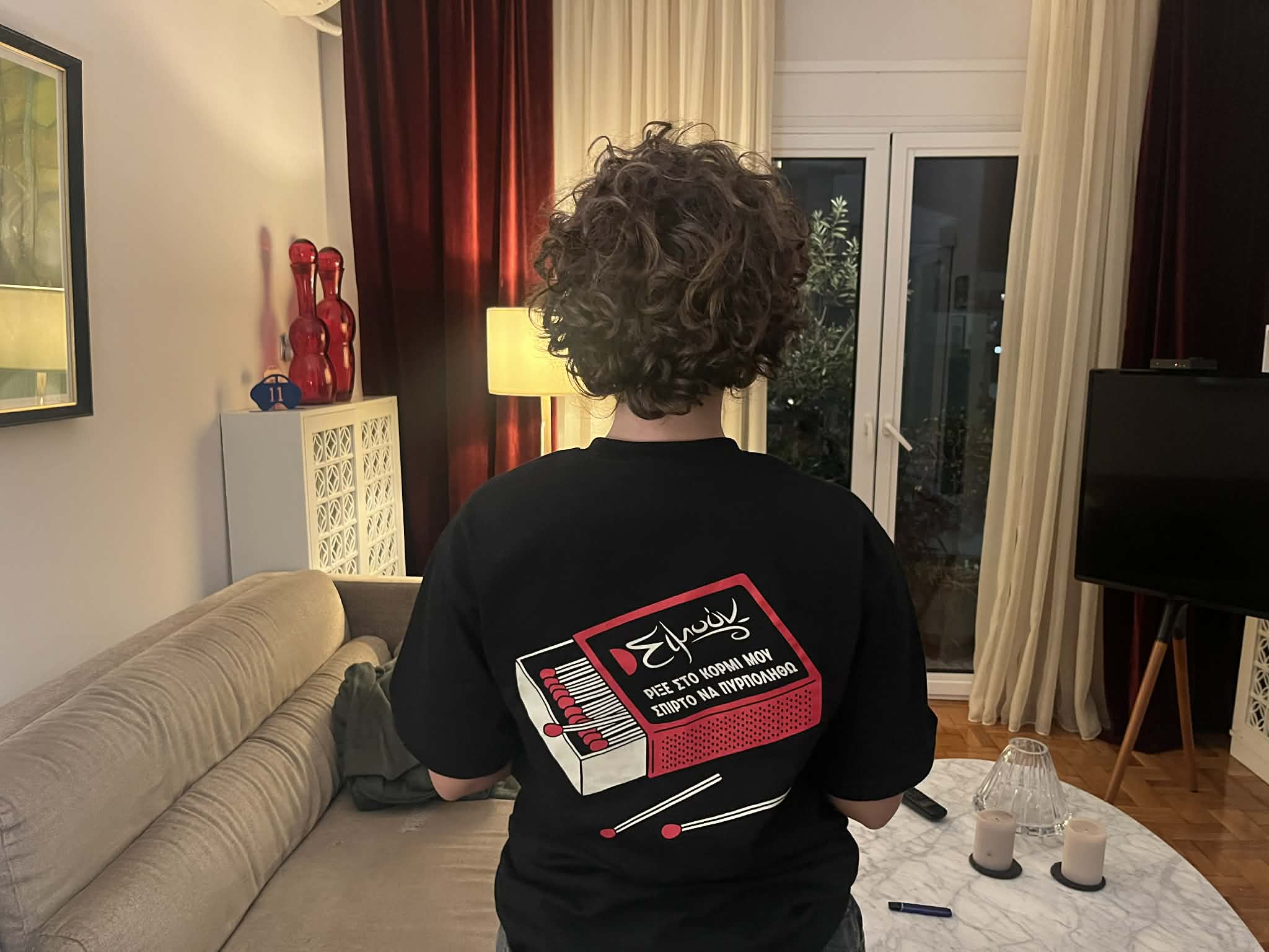 Τελικά, άνοιξε και πάλι τον Ιούλιο. Κανείς δεν το πίστευε ότι θα μπορούσε να ξαναγίνει μαγαζί εκείνο το μαύρο τίποτα· τρεις τοίχοι είχαν μείνει, να στέκονται και να μην στέκονται, χωρίς στέγη, χωρίς τίποτα. Επίσης, κανείς δεν πίστευε ότι ο Φόρης θα ξαναέφτιαχνε το τζάκι. Το έκανε όμως. Έτσι από πείσμα και για να «ξορκίσει» το κακό. Μόνο που του άλλαξε θέση. Καλύτερα είναι τώρα εκεί που το έβαλε. Το βλέπεις από παντού, ζεσταίνει κυριολεκτικά και μεταφορικά το χώρο που είναι σαν να μεγάλωσε, σαν να ψήλωσε… Την προηγούμενη εβδομάδα το άναψε για πρώτη φορά και η ανθρωπογραφία της εστίασης στο λόφο του Φρούριου ήταν σε επιφυλακή… «Προσοχή, ο Φόρης ανάβει το τζάκι!». Αλλά ο Φόρης ξέρει καλύτερα… Για αυτό και στα μπλουζάκια που έβγαλε φέτος γράφει την ατάκα «Ρίξε στο κορμί μου σπίρτο να πυρπολυθώ»!