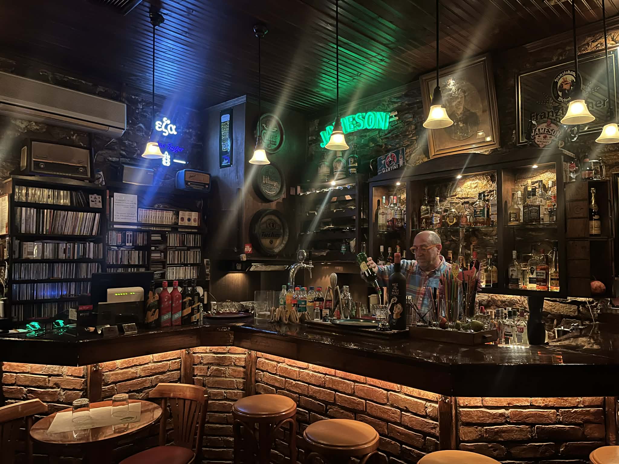 Την ίδια χρονιά που άνοιξε το «Εν Λαρίση», το 1997, άνοιξε και το «Έτερον» στο λόφο του Φρουρίου. Ήταν μάλιστα το πρώτο μπαρ που λειτούργησε στο λόφο, το πρώτο που πήρε άδεια λειτουργίας. «Ήταν καφενείο πιο πριν και δεν είχα πρόβλημα με τη χρήση γης» μου εξήγησε ο Αχιλλέας Ματθαίου που παραμένει μέχρι σήμερα ο ιδιοκτήτης αυτού του μπαρ που αποτελεί πλέον μια κατηγορία μόνο του. Ίσως σήμερα να είναι το πιο παλιό μπαρ στην πόλη όπου δεν άλλαξε τίποτα· και η διακόσμηση και η μουσική ίδια είναι. Ένα μπαρ με την κλασική έννοια του όρου. Το νιώθεις όλο αυτό στον χώρο μόλις περνάς την πόρτα· σε ενσωματώνει στον κόσμο του. Και φυσικά έχει και αυτό από την πρώτη μέρα τζάκι. Ούτε μια μέρα δεν έμεινε σβηστό το χειμώνα όλα αυτά τα χρόνια. Λες και ήταν η πρώτη και η τελευταία λεπτομέρεια για να νιώσεις θαλπωρή, άνεση και οικειότητα και κάτσεις στο μπαρ ή στα τραπεζάκια να ακούς έντεχνες μουσικές, να κοιτάς τις φλόγες στα ξύλα και να αφήνεσαι.