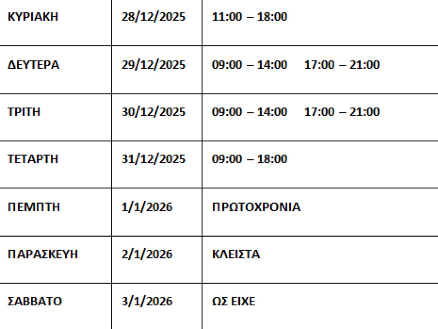 Την Κυριακή 14 Δεκεμβρίου 2025 ο Εμπορικός Σύλλογος Λάρισας προτείνει στα καταστήματα-μέλη του να παραμείνουν κλειστά.
