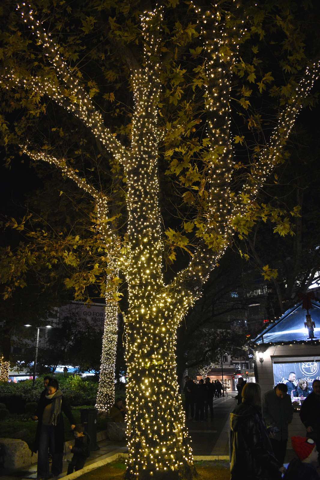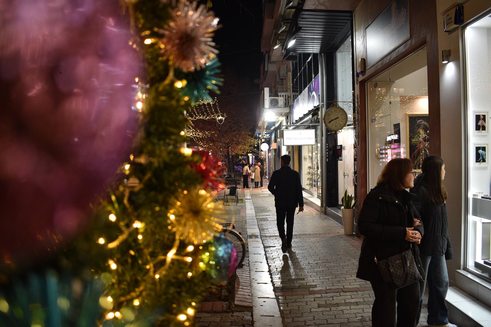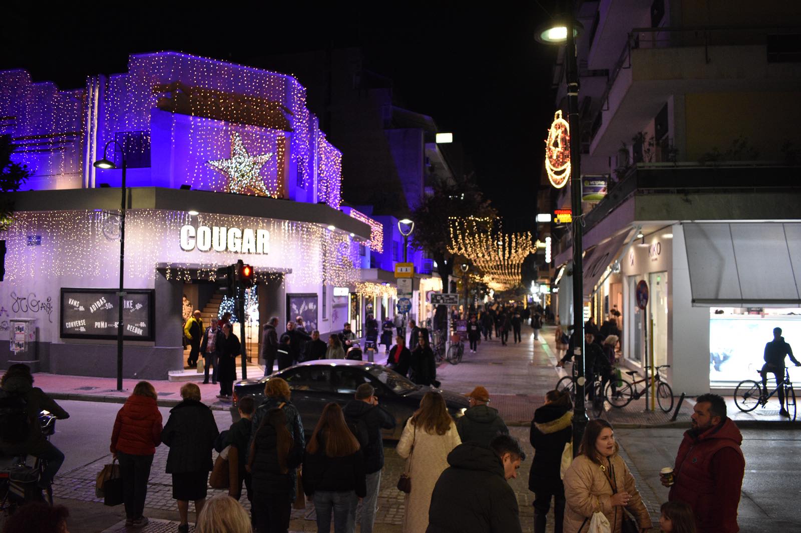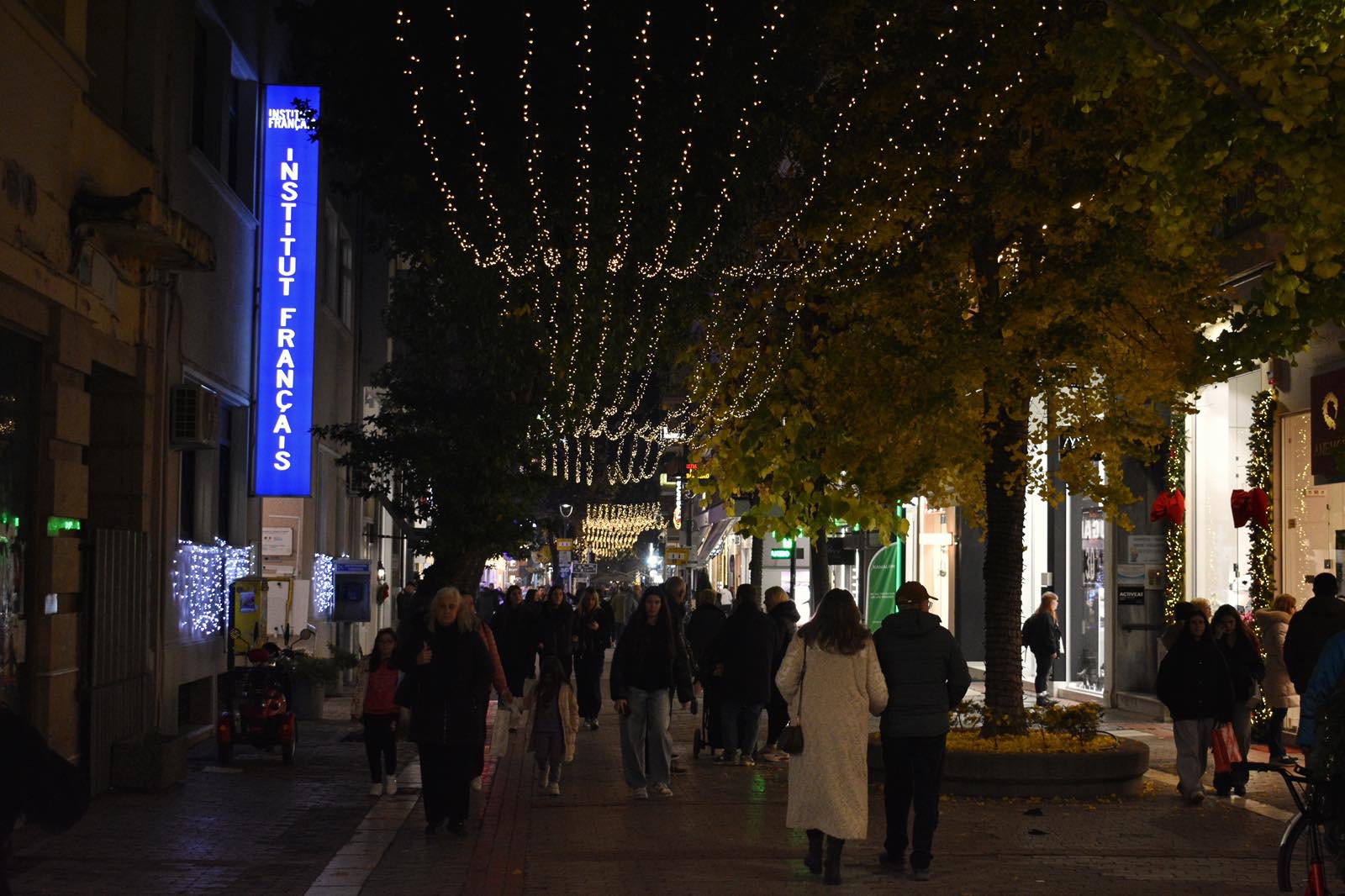 Λαμπερή και άκρως χριστουγεννιάτικη η Λάρισα, με το κέντρο της όμορφα στολισμένο με χιλιάδες λαμπιόνια στους πεζοδρόμους της.