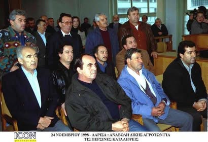 Τί εποχές… Πόσες ιστορίες… Δημοσιογράφοι και κάμερες πάντα εκεί. Στην συντριπτική πλειοψηφία οι δικαστικές αποφάσεις ήταν αθωωτικές, οι δίκες γίνονταν με κεκτημένη ταχύτητα, στον αυτόματο πιλότο, όλοι τα ίδια λέγαμε πάντα, όλοι· καρμπόν. Μέχρι που μια μέρα ένας εισαγγελέας στα πρώτα μόλις λεπτά της ακροαματικής διαδικασίας μας απάντησε «Εντάξει, τόσες φορές έχουν αθωωθεί, ας καταδικαστούν και μια, δεν πειράζει» όταν προσκομίσαμε πάμπολλες προγενέστερες αθωωτικές αποφάσεις ισχυριζόμενοι ότι το θέμα έχει ουσιαστικά κριθεί. Ήμασταν δύο δικηγόροι τότε γιατί εκείνο το αγροτοδικείο ήταν σοβαρό. Παραπέμπονταν ως κατηγορούμενοι και μέλη της συντονιστικής επιτροπής ως ηθικοί αυτουργοί. Μετά την καταδίκη, ο Θανάσης Κοκκινούλης, πρόεδρος τότε της ΕΑΣ Λαρίσης-Τυρνάβου-Αγίας, μέλος της πρώτης Πανθεσσαλικής Συντονιστικής Επιτροπής (ΠΑΣΕ), δήλωσε μπροστά στις κάμερες «Το ήξερα ότι η δικαιοσύνη είναι τυφλή, δεν ήξερα όμως ότι ήταν και κουφή», τραβώντας έντονα το αυτί του.