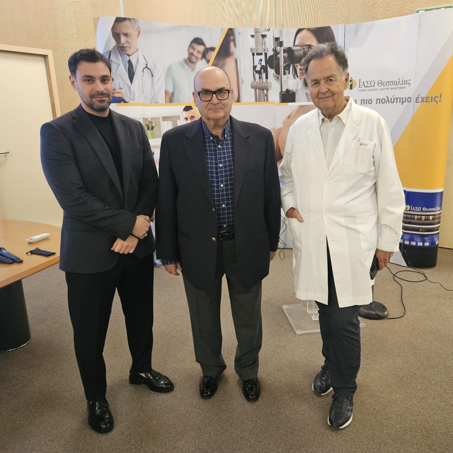 Με θέμα που συγκέντρωσε έντονο επιστημονικό ενδιαφέρον, πραγματοποιήθηκε η νέα διάλεξη του ετήσιου κύκλου «Επιστημονικές Διαλέξεις 2025–2026» του ΙΑΣΩ Θεσσαλίας, με τίτλο «Σύγχρονα θαύματα στην Οφθαλμολογία». Ο Χειρουργός Οφθαλμίατρος και Διευθυντής της Α’ Οφθαλμολογικής Κλινικής, Ιωάννης Τσιαμπαλής, και ο Χειρουργός Οφθαλμίατρος – Επιμελητής της Κλινικής, Αλέξανδρος Τσιαμπαλής, παρουσίασαν τις πιο πρόσφατες εξελίξεις που αλλάζουν τα δεδομένα στη διάγνωση και τη θεραπεία παθήσεων των οφθαλμών. Τη συζήτηση συντόνισε ο Δρ. Απόστολος Κομνός, Αναισθησιολόγος – Εντατικολόγος και Διευθυντής Ιατρικής Υπηρεσίας του ΙΑΣΩ Θεσσαλίας.