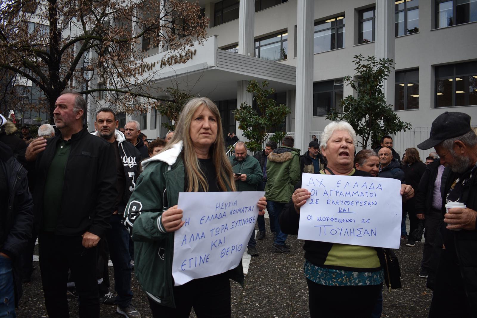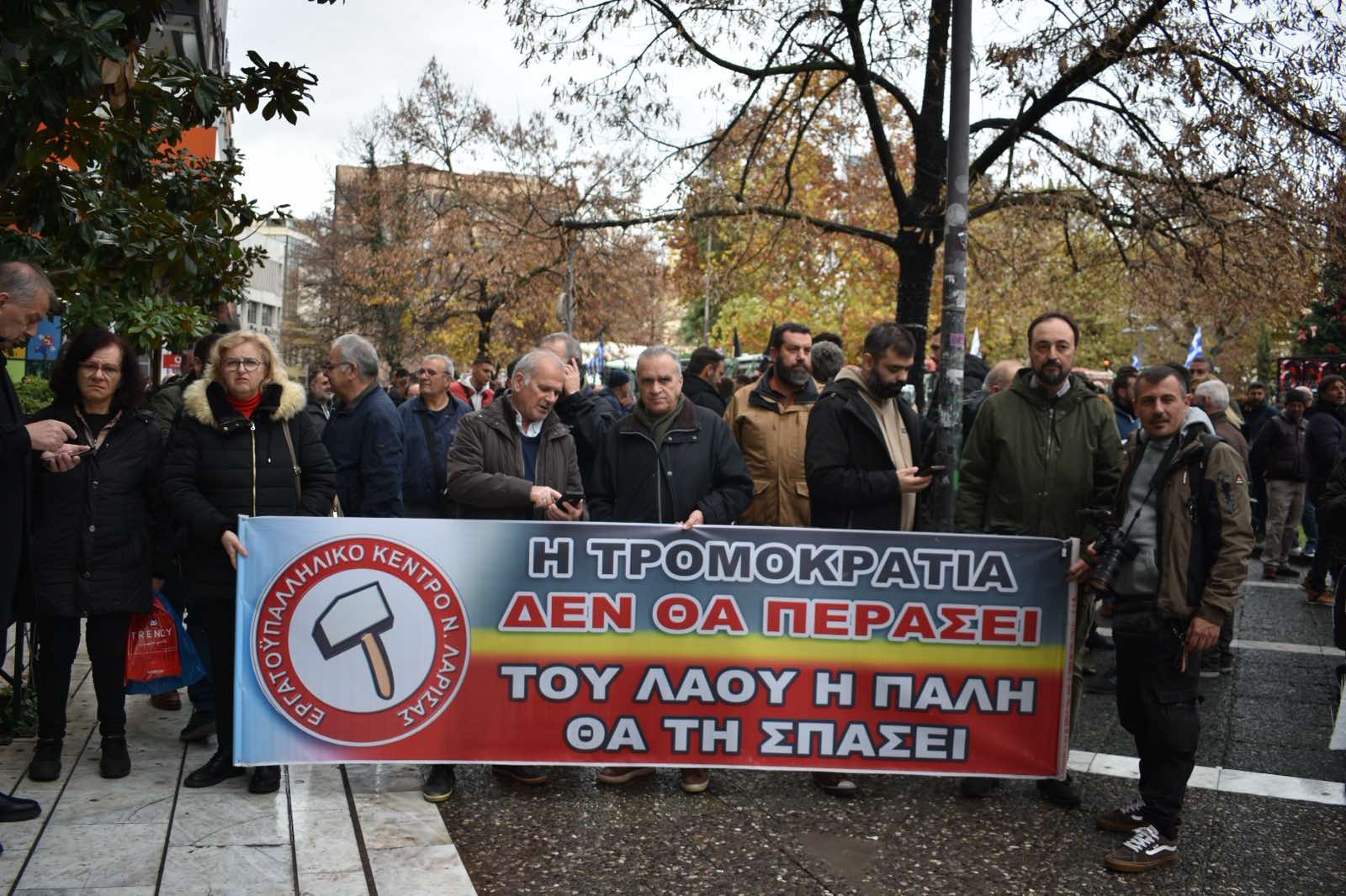 Ο πρόεδρος της ΕΟΑΣΝΛ Ρίζος Μαρούδας, σημείωσε: «Το μπλόκο Νίκαιας εκφράζοντας την συμπαράστασή του στους δύο αγωνιστές συναδέλφους μας που έχουν συλληφθεί και δικάζονται σήμερα εντελώς παράλογα, έχουμε κάνει αυτή τη συγκέντρωση συμπαράστασης μαζί με άλλους φορείς της πόλης τους οποίους ευχαριστούμε πολύ. Ήρθαμε με συμβολικό αριθμό τρακτέρ για να δείξουμε ότι αυτές οι ενέργειες, αυτή η τρομοκρατία και η καταστολή, τα αγροτοδικεία, ποτέ δεν σταμάτησαν τις κινητοποιήσεις μας και ούτε πρόκειται να τις σταματήσουν τώρα. Ίσα ίσα μας δυναμώνουν, μας οργίζουν περισσότερο και θα βγουν ακόμα περισσότερα τρακτέρ και θα ενισχύσουμε τα μπλόκα μας.