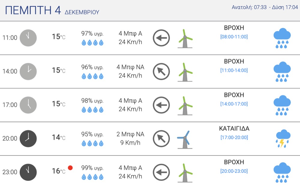 Α. Πέμπτη (04-12-2025) κατά τόπους ισχυρές βροχές και καταιγίδες προβλέπονται: