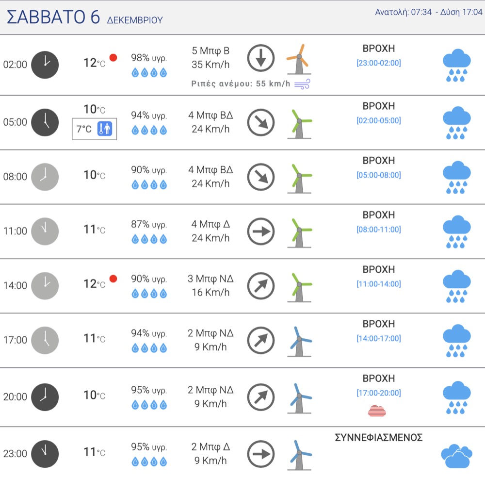 Ανεμοι: Νότιοι νοτιοανατολικοί 4 με 6 μποφόρ.