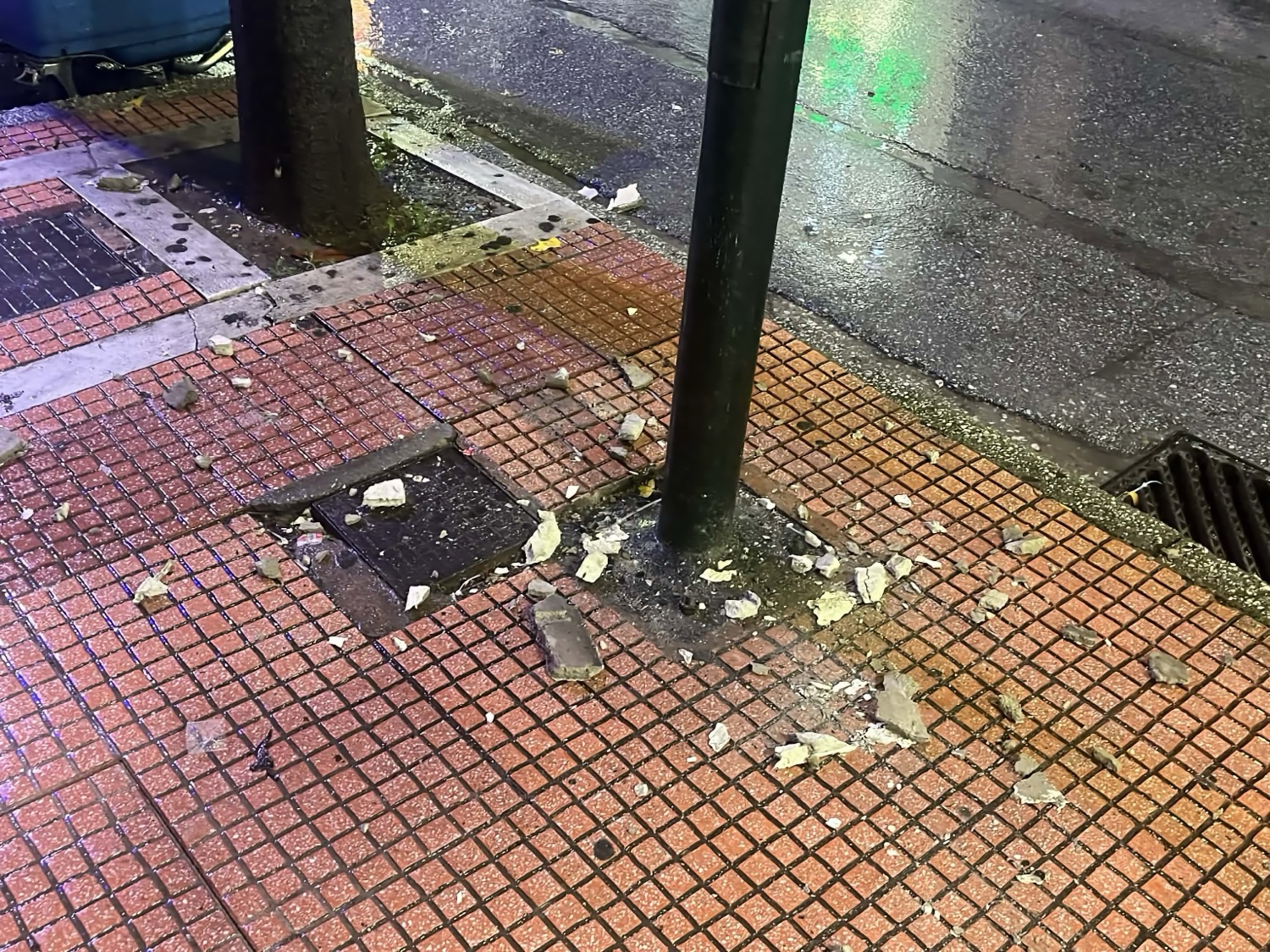 Το συμβάν έγινε κοντά στη συμβολή των οδών Παναγούλη με Κούμα, όταν άρχισαν να αποκολλούνται από το μπαλκόνι του πρώτου ορόφου, μικρά κομμάτια σοβά.
