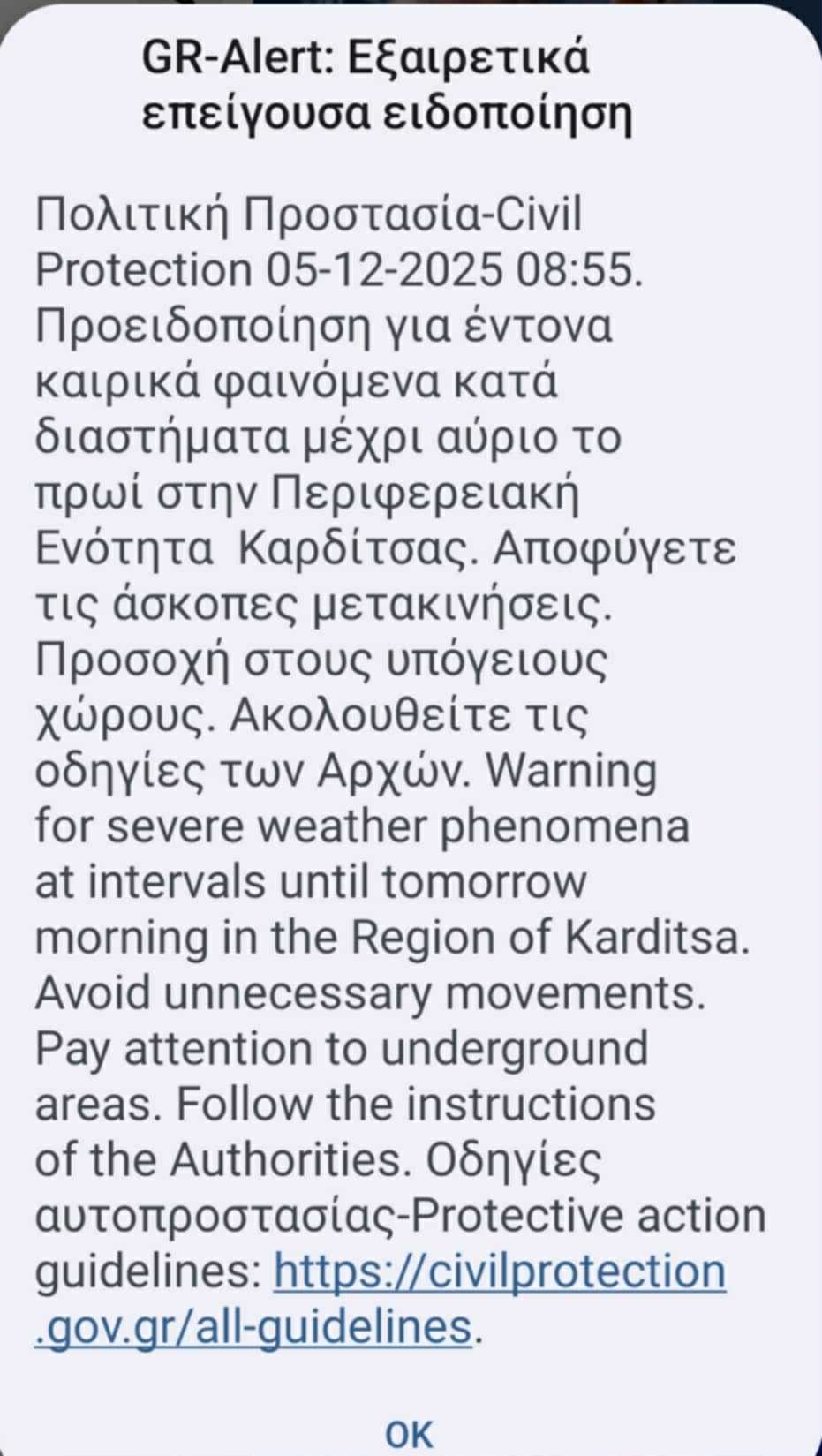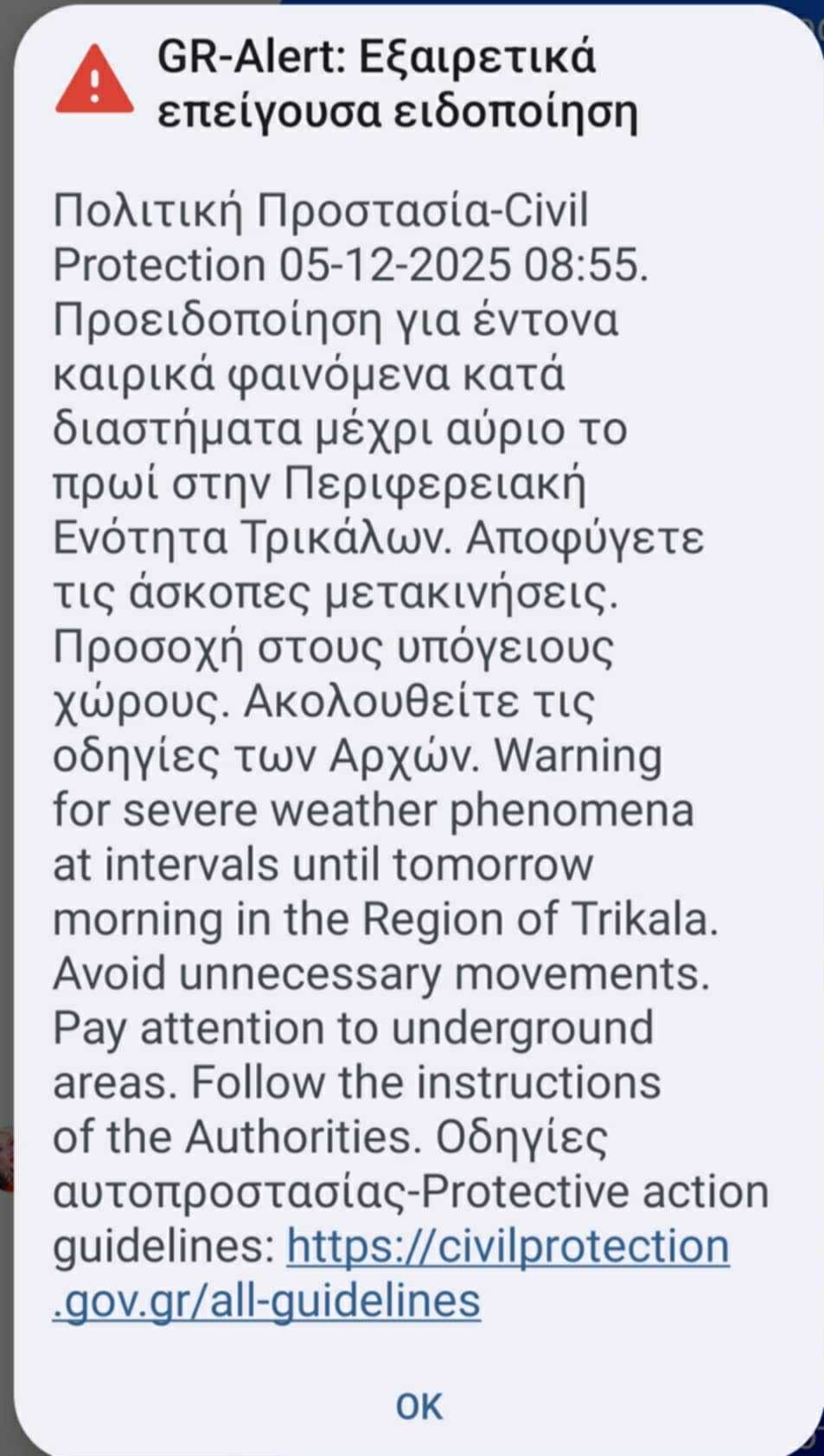 Πριν λίγα λεπτά ήχησε 112 στα κινητά πολιτών σε περιοχές της Λάρισας και του Τυρνάβου, αλλά …για τις περιφερειακές ενότητες Τρικάλων και Καρδίτσας.