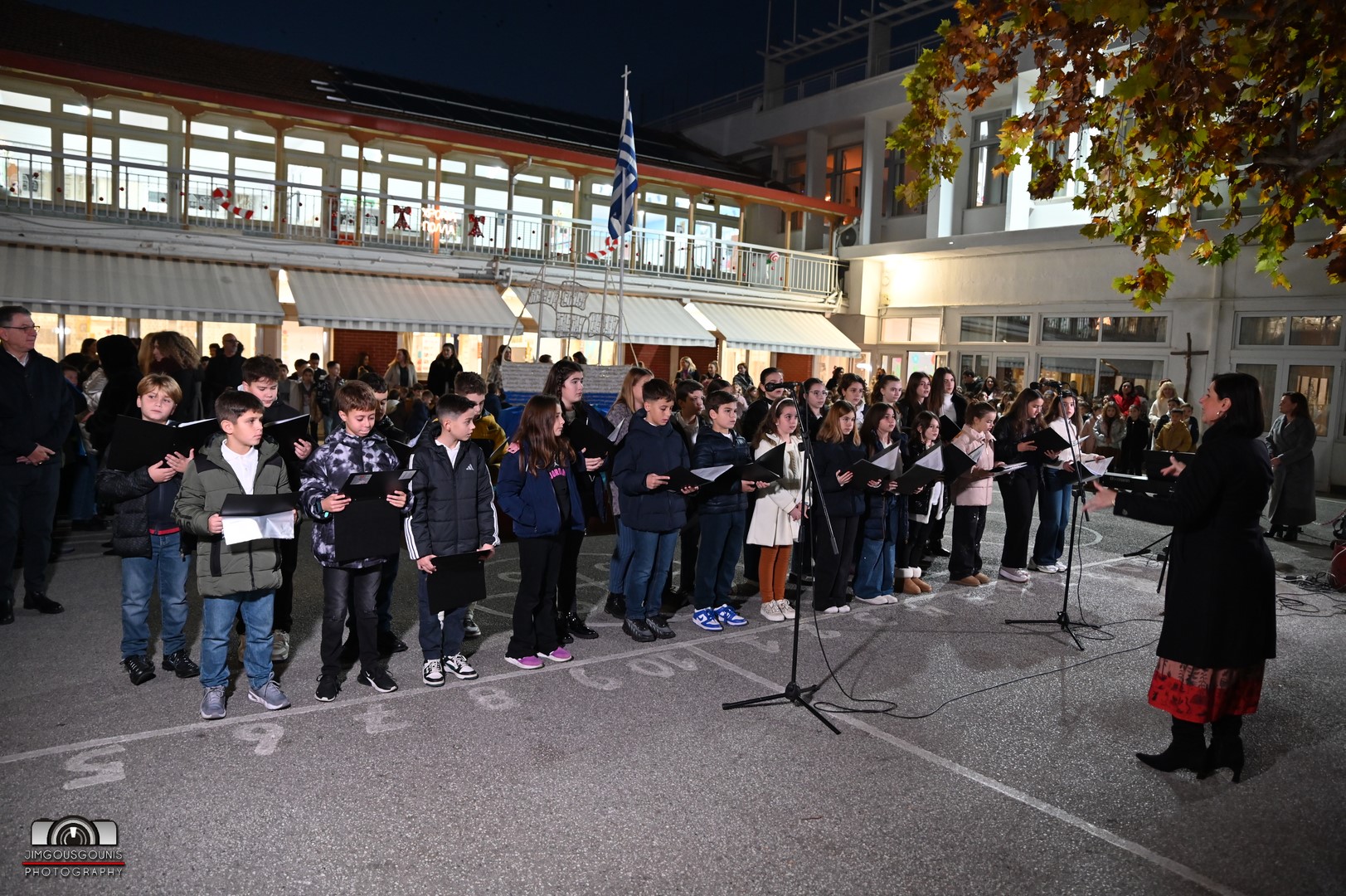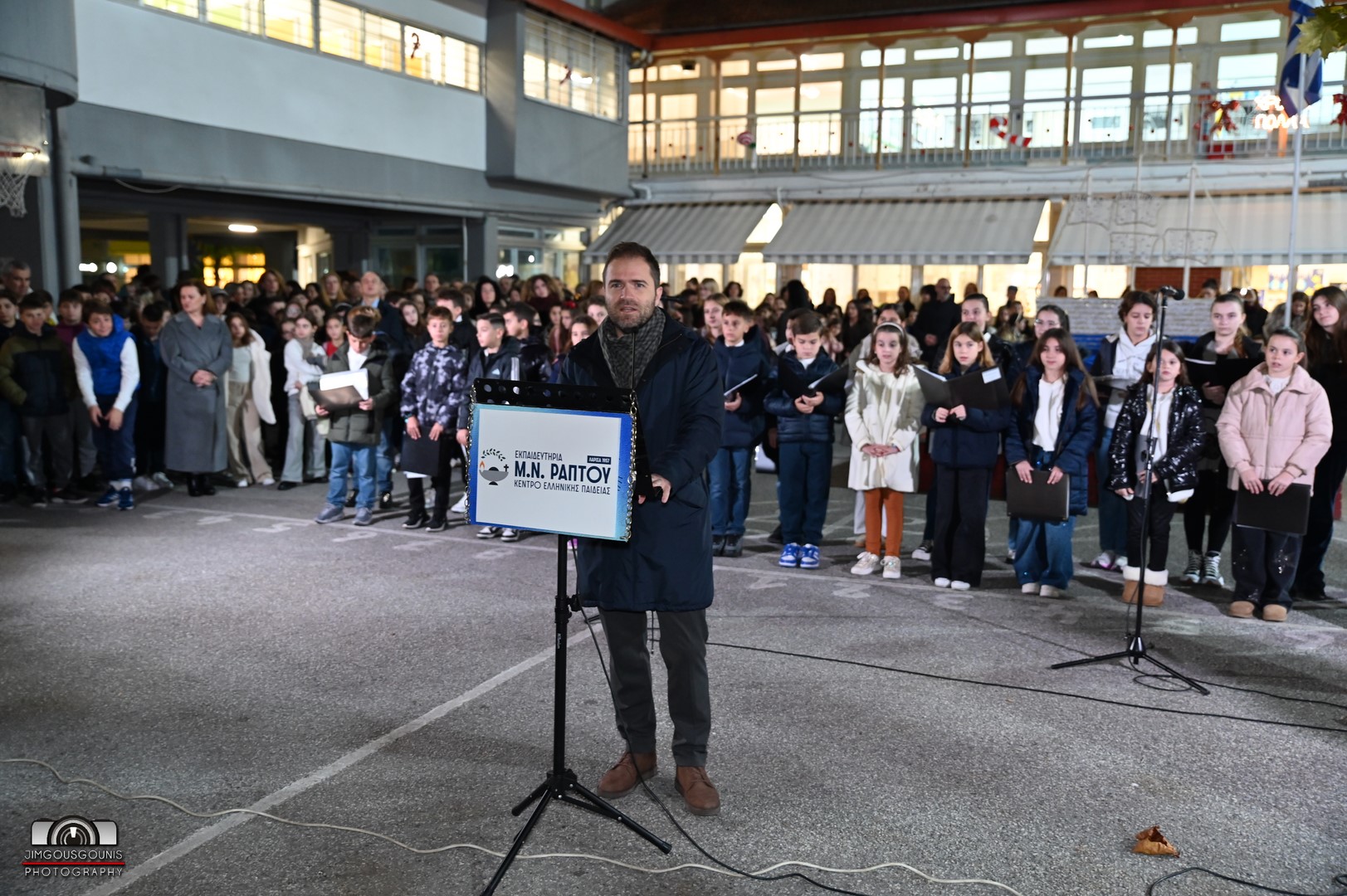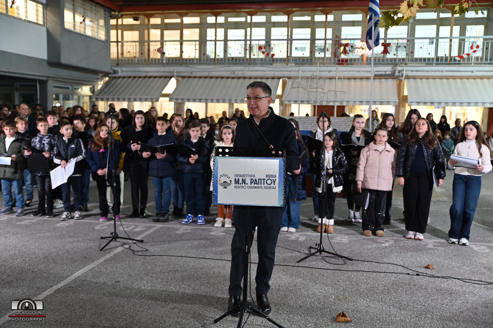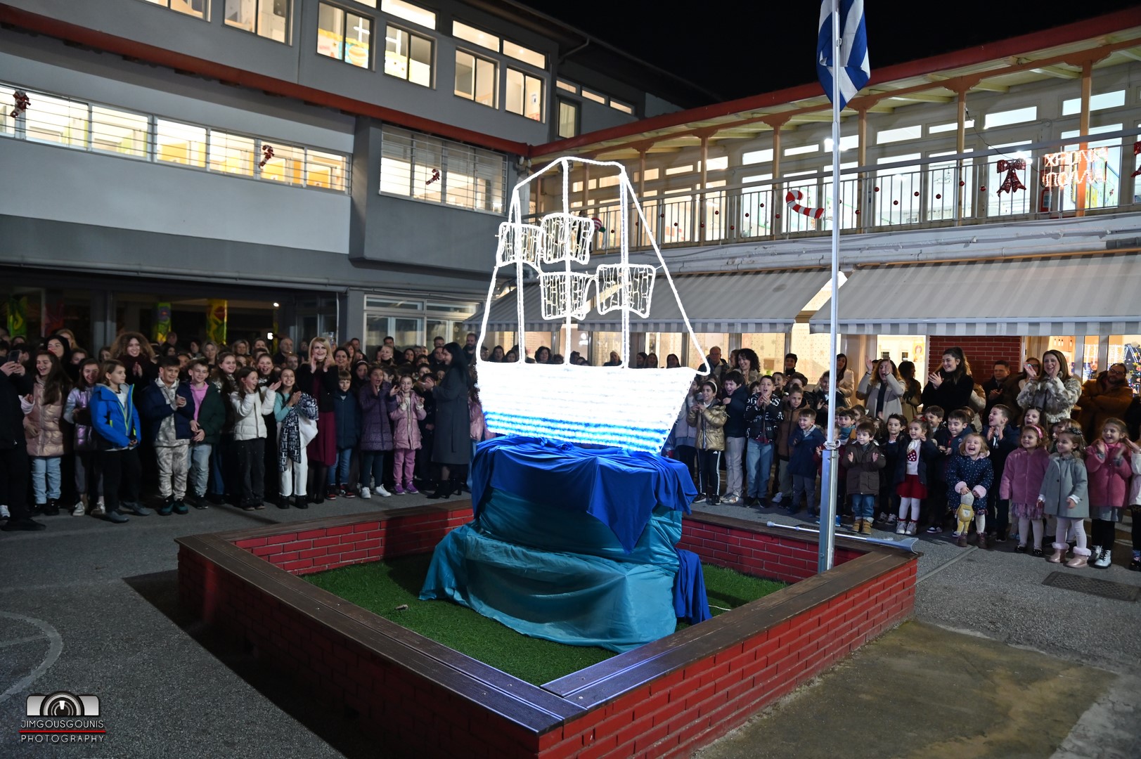Η εκδήλωση άνοιξε με χαιρετισμό του Προέδρου των Εκπαιδευτηρίων κ. Νικόλαου Ράπτη, ενώ ακολούθησαν χριστουγεννιάτικα κάλαντα από τη μαθητική χορωδία και φωταγώγηση του εορταστικού καραβιού στην αυλή του σχολείου.