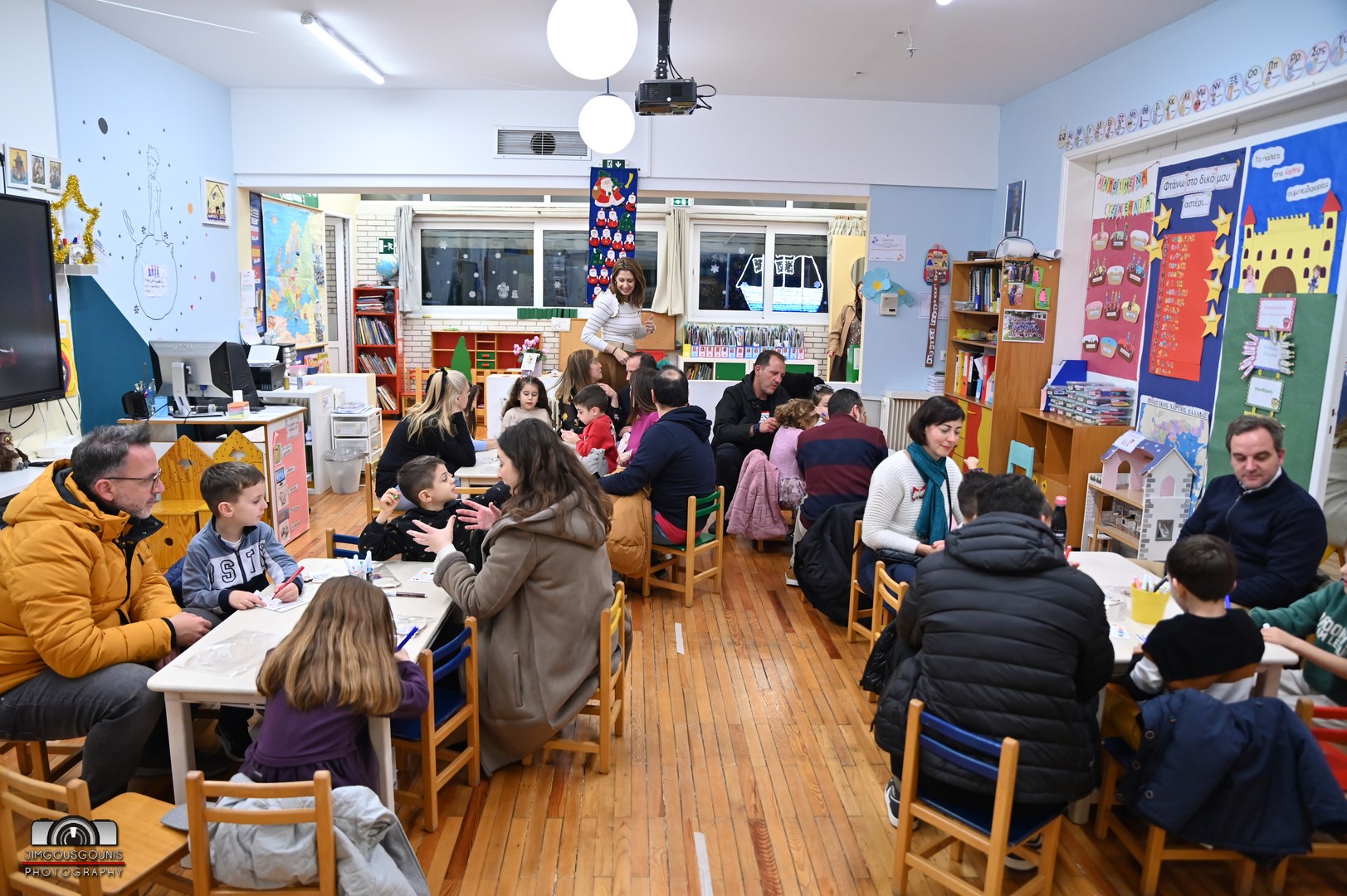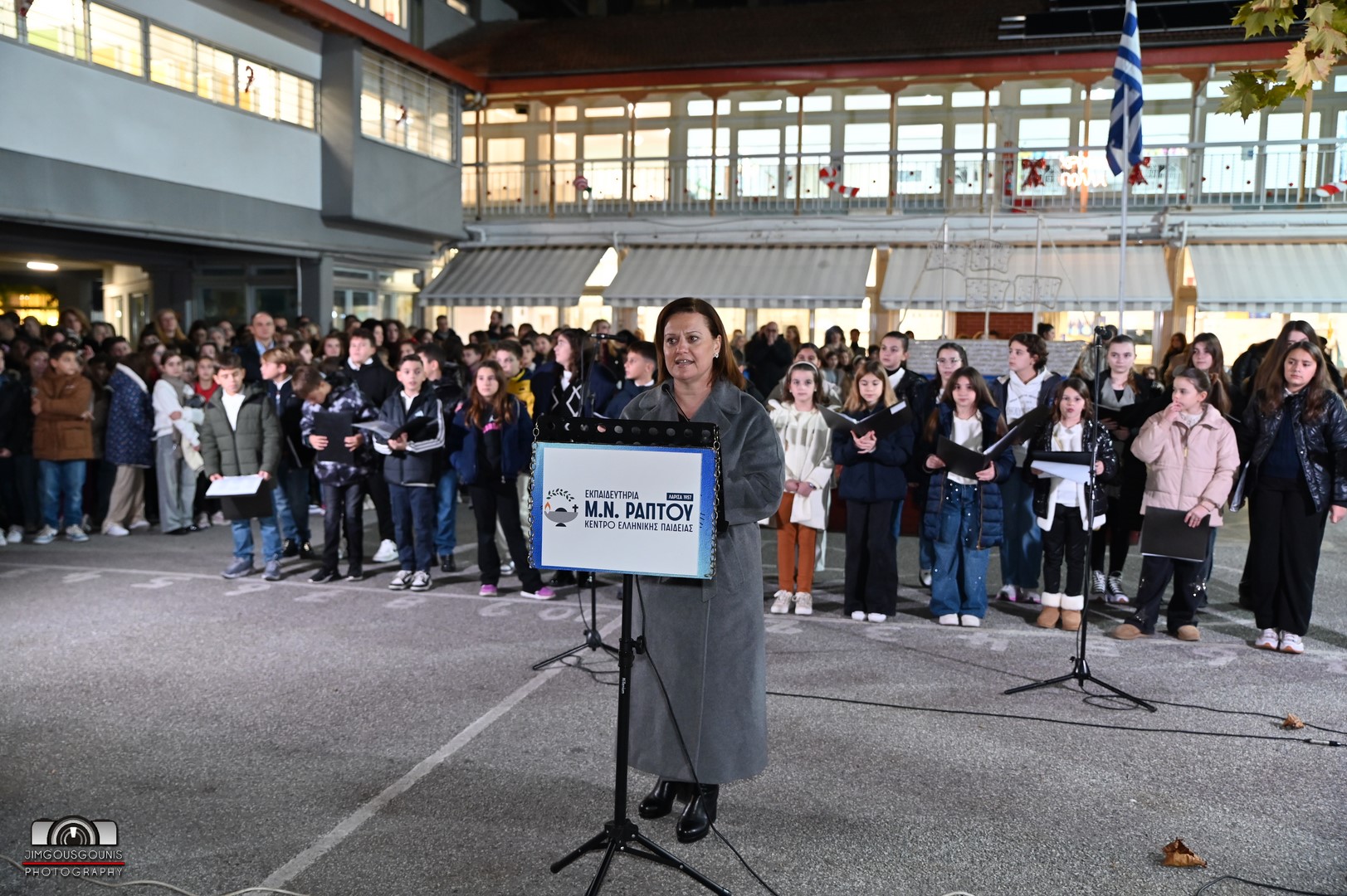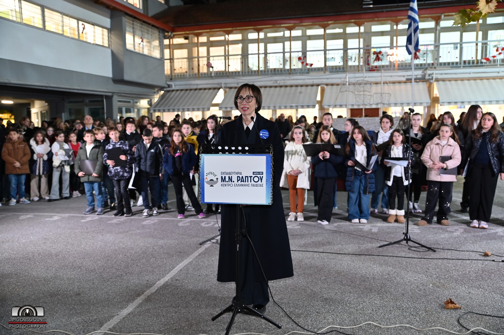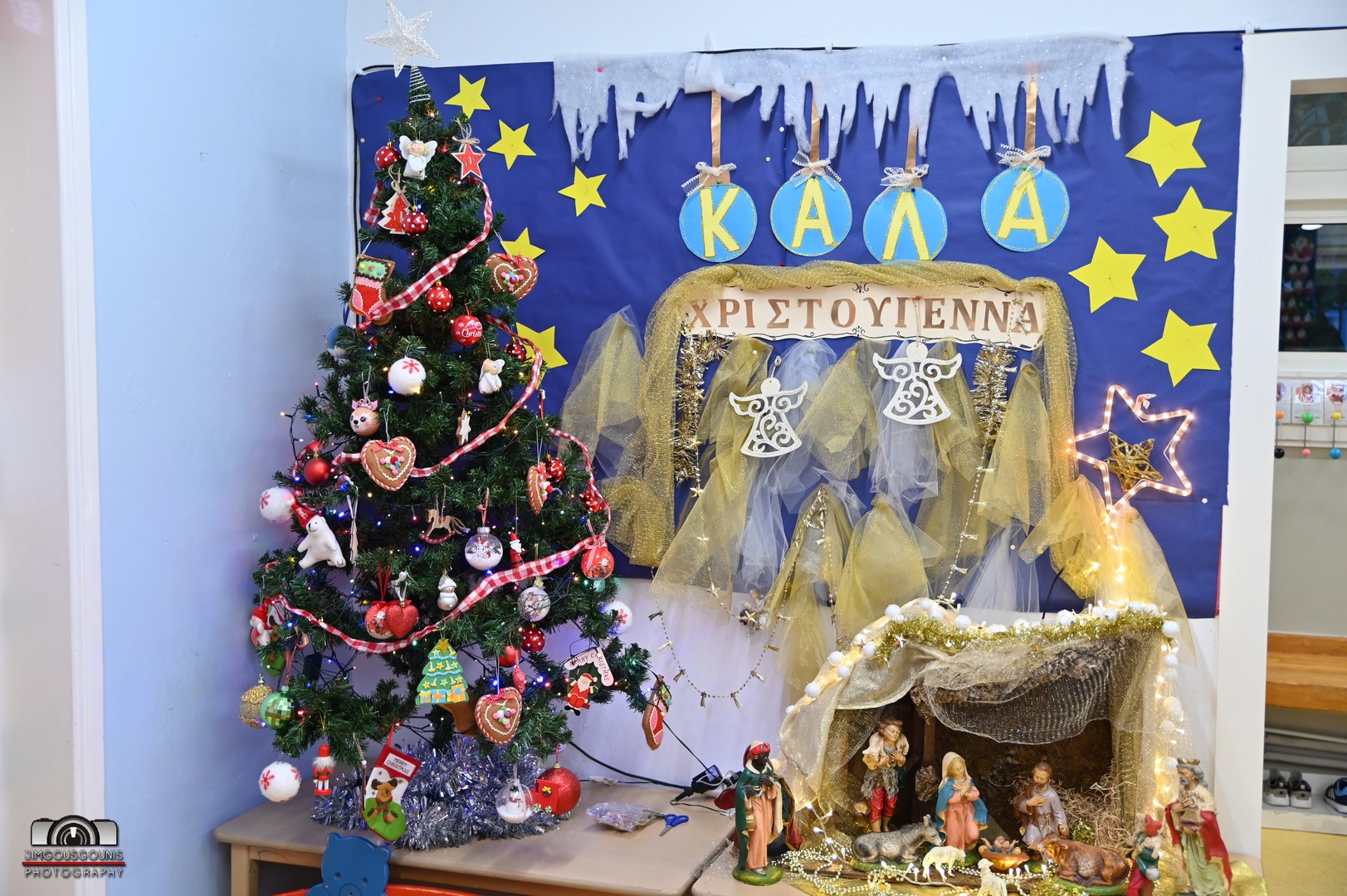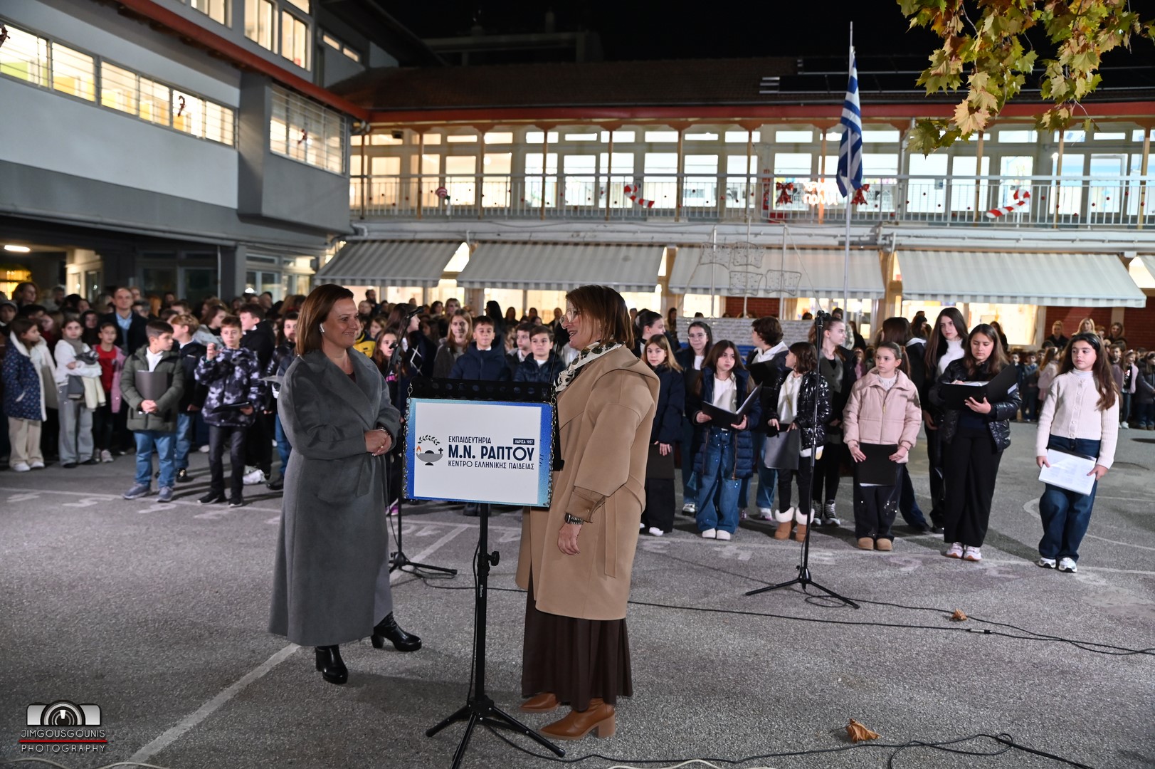 Η εκδήλωση άνοιξε με χαιρετισμό του Προέδρου των Εκπαιδευτηρίων κ. Νικόλαου Ράπτη, ενώ ακολούθησαν χριστουγεννιάτικα κάλαντα από τη μαθητική χορωδία και φωταγώγηση του εορταστικού καραβιού στην αυλή του σχολείου.