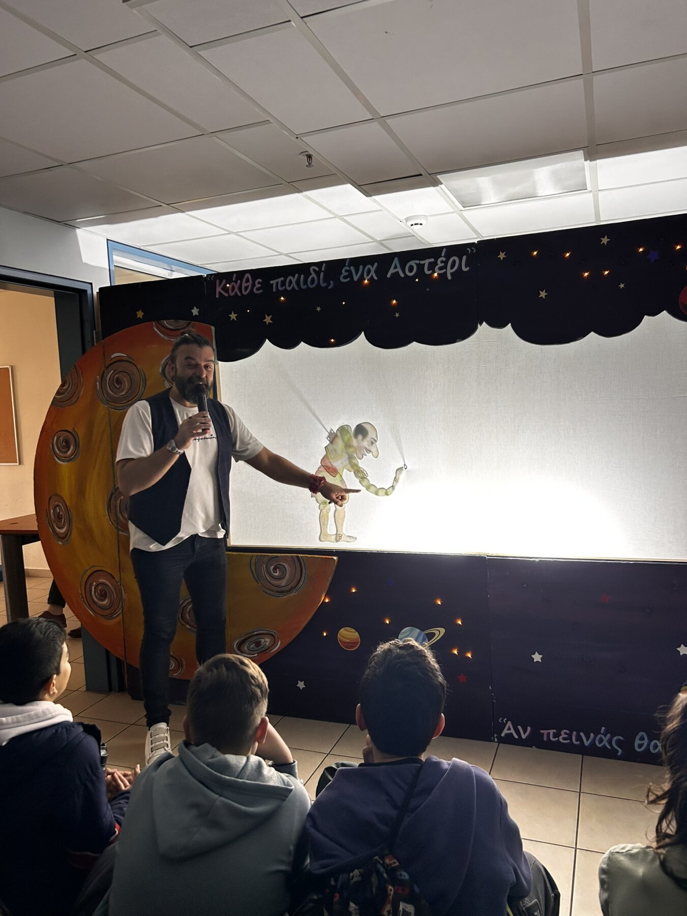 Η ημέρα κορυφώθηκε με την παράσταση θεάτρου σκιών «ΑμΕΑ, Σεβάσου με!» την οποία παρουσίασε με ιδιαίτερη ευαισθησία και ζωντάνια ο κ. Κοσμάς Παναγιώκας, προσφέροντας στους μαθητές μια διαδραστική και γεμάτη θετική ενέργεια εμπειρία με κεντρικό μήνυμα τη διαφορετικότητα και τον σεβασμό.