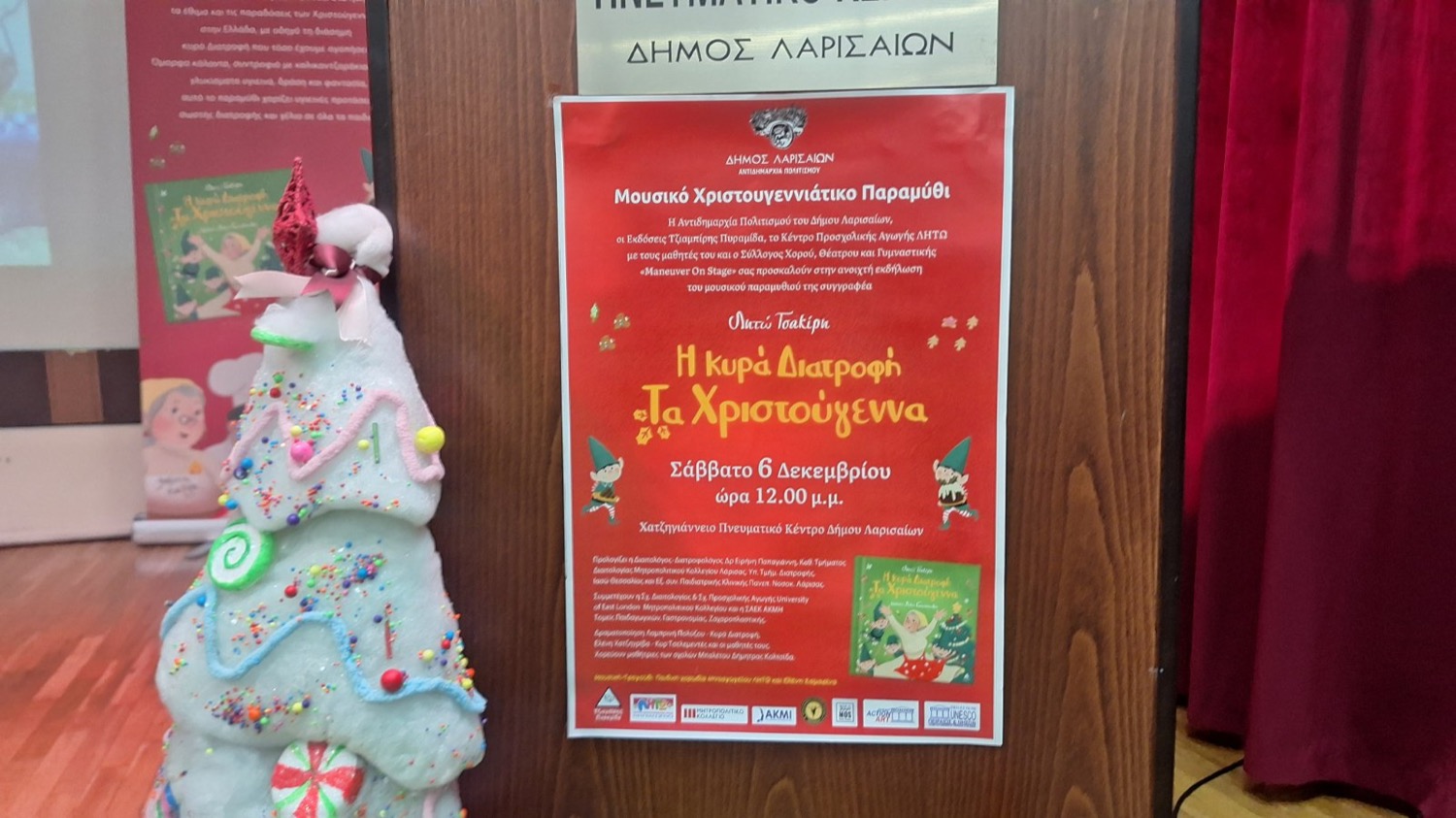 Ανοιχτή γιορτινή εκδήλωση δραματοποίησης του χριστουγεννιάτικου μουσικού παραμυθιού «Η κυρά Διατροφή τα Χριστούγεννα», έλαβε χώρα στη Λάρισα, σε διοργάνωση της Αντιδημαρχίας Πολιτισμού του Δήμου, με πρωταγωνιστές τη συγγραφέα Λητώς Τσακίρη και τους μικρούς μαθητές του Νηπιαγωγείου Λητώ, με τη συμμετοχή της ομάδας Maneuver on Stage.