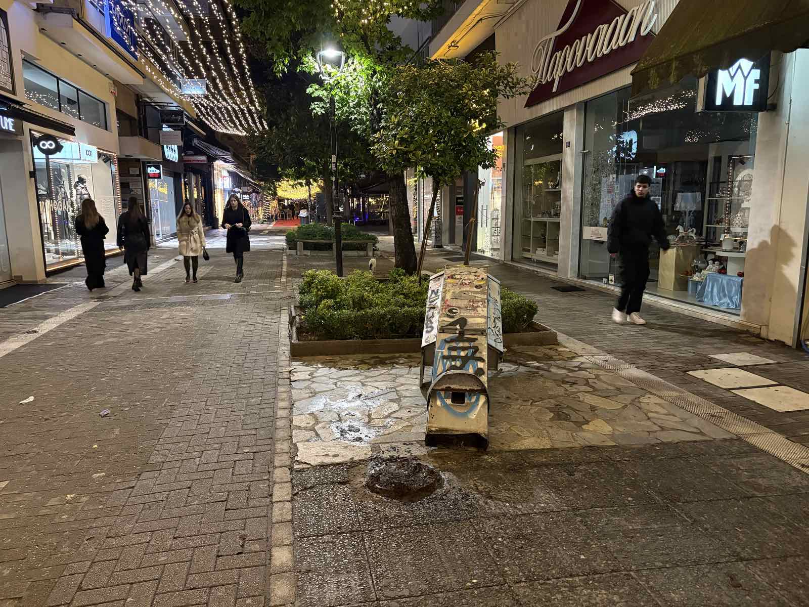 Λάρισα: Ξεριζώθηκε τηλεφωνικός θάλαμος στο κέντρο της πόλης μέσα στη νύχτα – Δείτε τις φωτογραφίες