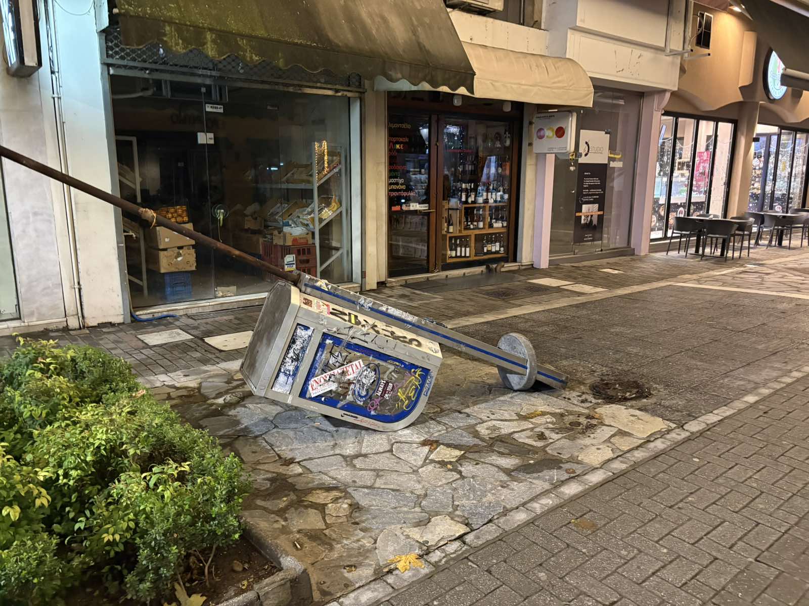 Λάρισα: Ξεριζώθηκε τηλεφωνικός θάλαμος στο κέντρο της πόλης μέσα στη νύχτα – Δείτε τις φωτογραφίες