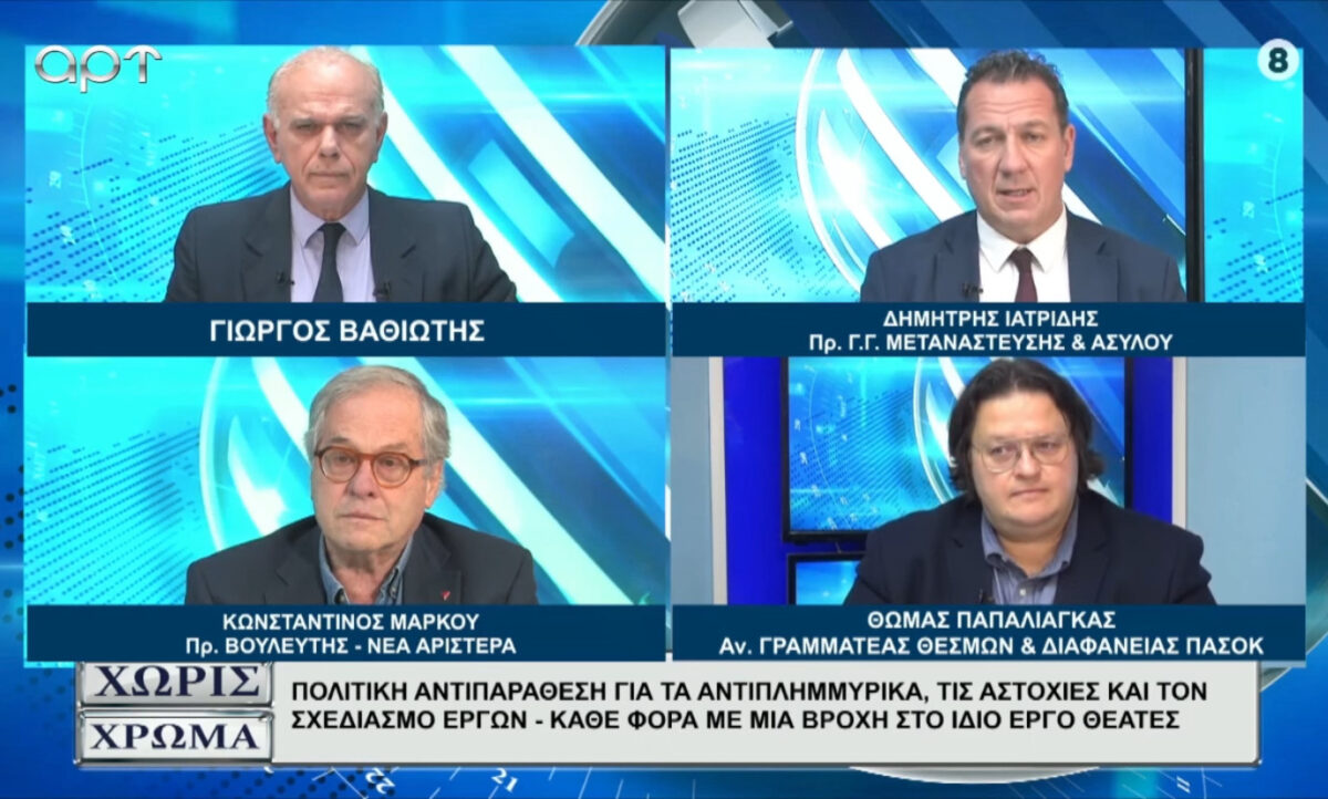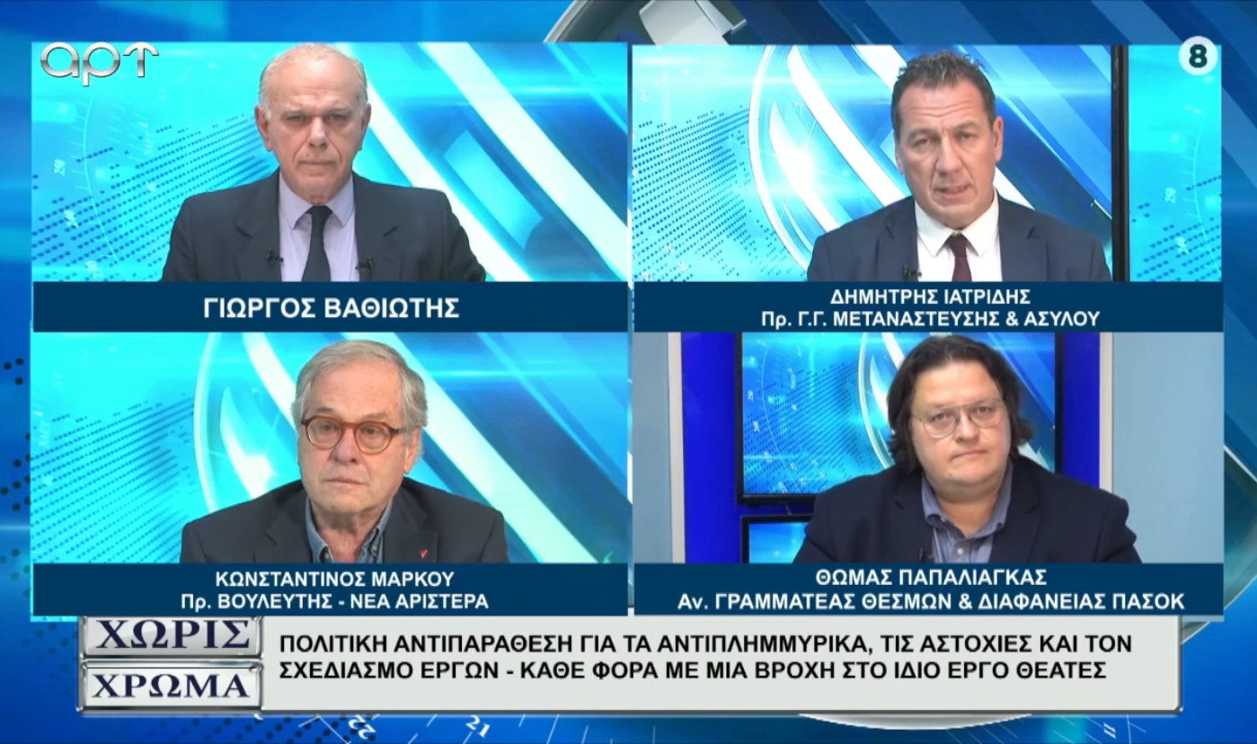 Προχθές Παρασκευή 5 Δεκεμβρίου στην εκπομπή «Χωρίς Χρώμα» του Αρτ TV, με τον Γιώργο Βαθιώτη, ήταν καλεσμένος ο Θωμάς Παπαλιάγκας, Αναπληρωτής Γραμματέας Τομέα Θεσμών και Διαφάνειας του ΠΑΣΟΚ.Ο κ. Παπαλιάγκας αναφέρθηκε στις φυσικές καταστροφές στη Θεσσαλία και στη σημασία των αντιπλημμυρικών μέτρων.