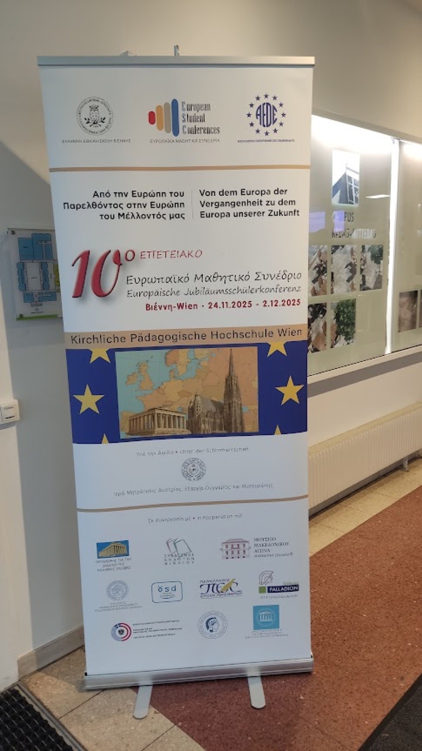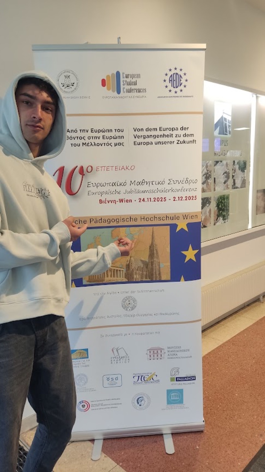 Με ιδιαίτερη επιτυχία και συνεργατικό πνεύμα, το Γυμνάσιο Λ.Τ. Βερδικούσας και το Γυμνάσιο Λ.Τ. Λιβαδίου συμμετείχαν από τις 24 έως τις 27 Νοεμβρίου 2025 στο 10ο Ευρωπαϊκό Επετειακό Μαθητικό Συνέδριο στη Βιέννη. Το συνέδριο, το οποίο συγκέντρωσε φέτος 350 σχολεία, πρόσφερε στους συμμετέχοντες μια ξεχωριστή ευκαιρία για ανταλλαγή απόψεων, σύμπραξη και γνωστική διεύρυνση.