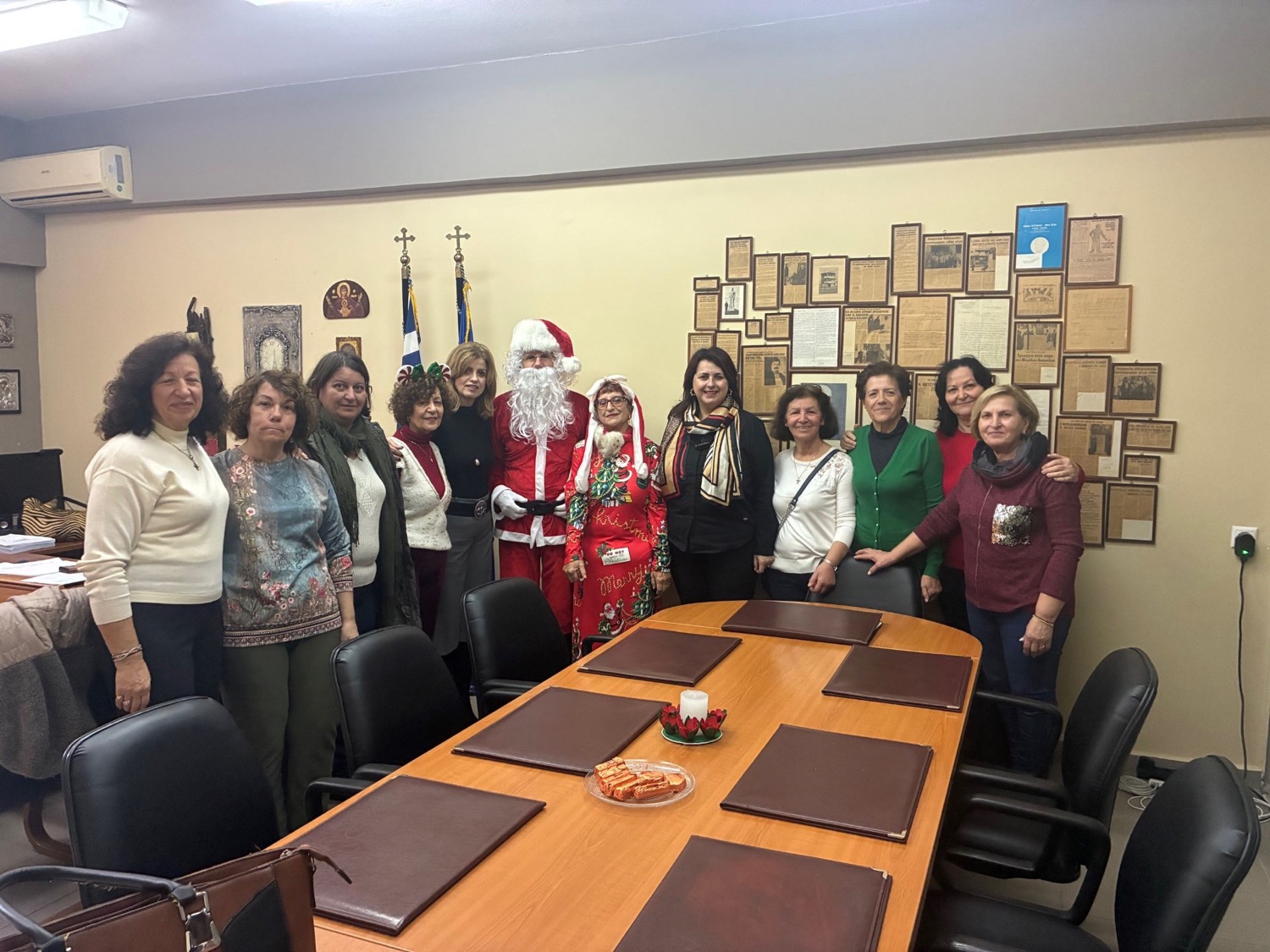 Η εκδήλωση ολοκληρώθηκε με τον Άγιο Βασίλη και την Άγιο-Βασιλίτσα, που τους υποδύθηκαν με ιδιαίτερη επιτυχία τα μέλη του ΚΑΠΗ ο κ. Νίκος Χουλιαρόπουλος και η κ. Άρτεμις Σιαφογιάννη, προσφέροντας χειροποίητες χριστουγεννιάτικες κατασκευές, τις οποίες φιλοτέχνησαν οι κυρίες του ΚΑΠΗ Γιάννουλης υπό την καθοδήγηση της κ. Εύης Καλούδη. Τα υλικά και τα διακοσμητικά είδη τα διέθεσαν για την εν λόγω δράση ο πρώην σύλλογος των Ενεργών Πολιτών Λάρισας, από τα αποθέματα του καλλιτεχνικού εργαστηρίου τους.