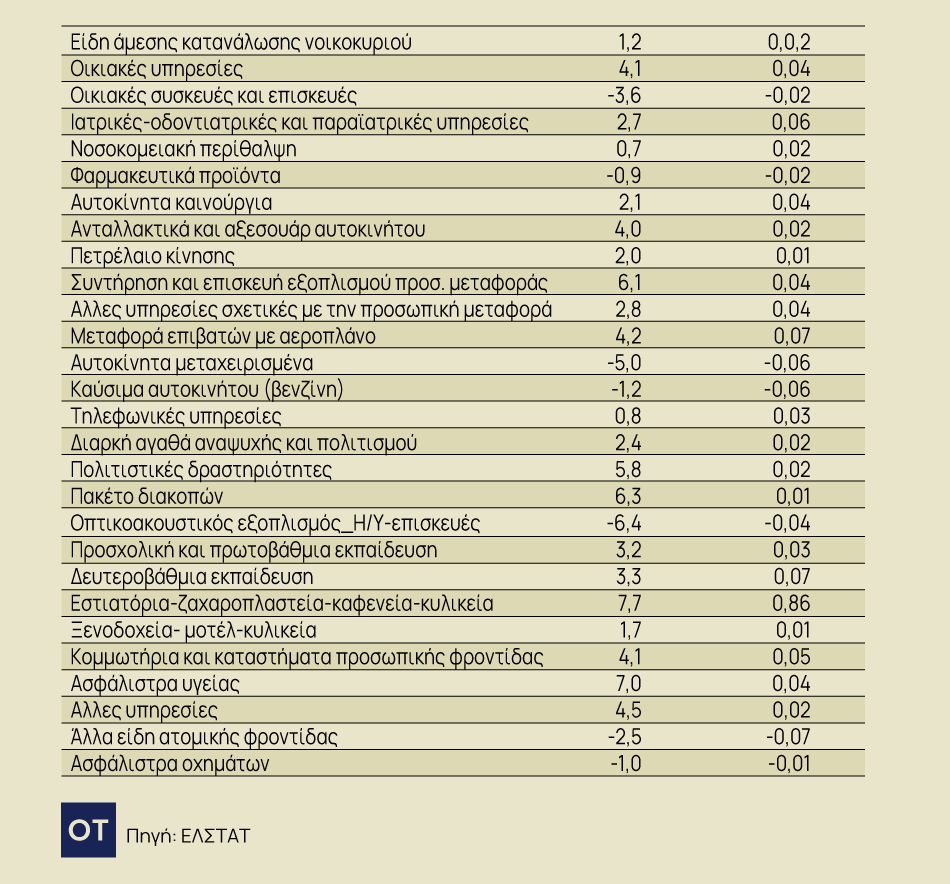 προήλθε κυρίως από τις μεταβολές στις ακόλουθες ομάδες αγαθών και υπηρεσιών: