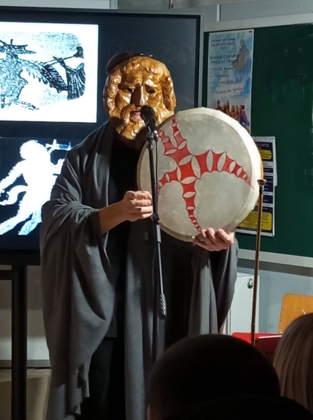 Μια πραγματικά σπάνια εκπαιδευτική εμπειρία, μια αξέχαστη ολοζώντανη δεξιοτεχνική, μουσικο-θεατρική παράσταση, ένα διαδραστικό μουσικό ταξίδι που γεφύρωσε το χθες, το σήμερα και το αύριο και συνοδεύτηκε από παράλληλη προβολή διαφανειών με παραστάσεις αγγείων με σκηνές από τη μουσική ζωή των αρχαίων Ελλήνων.