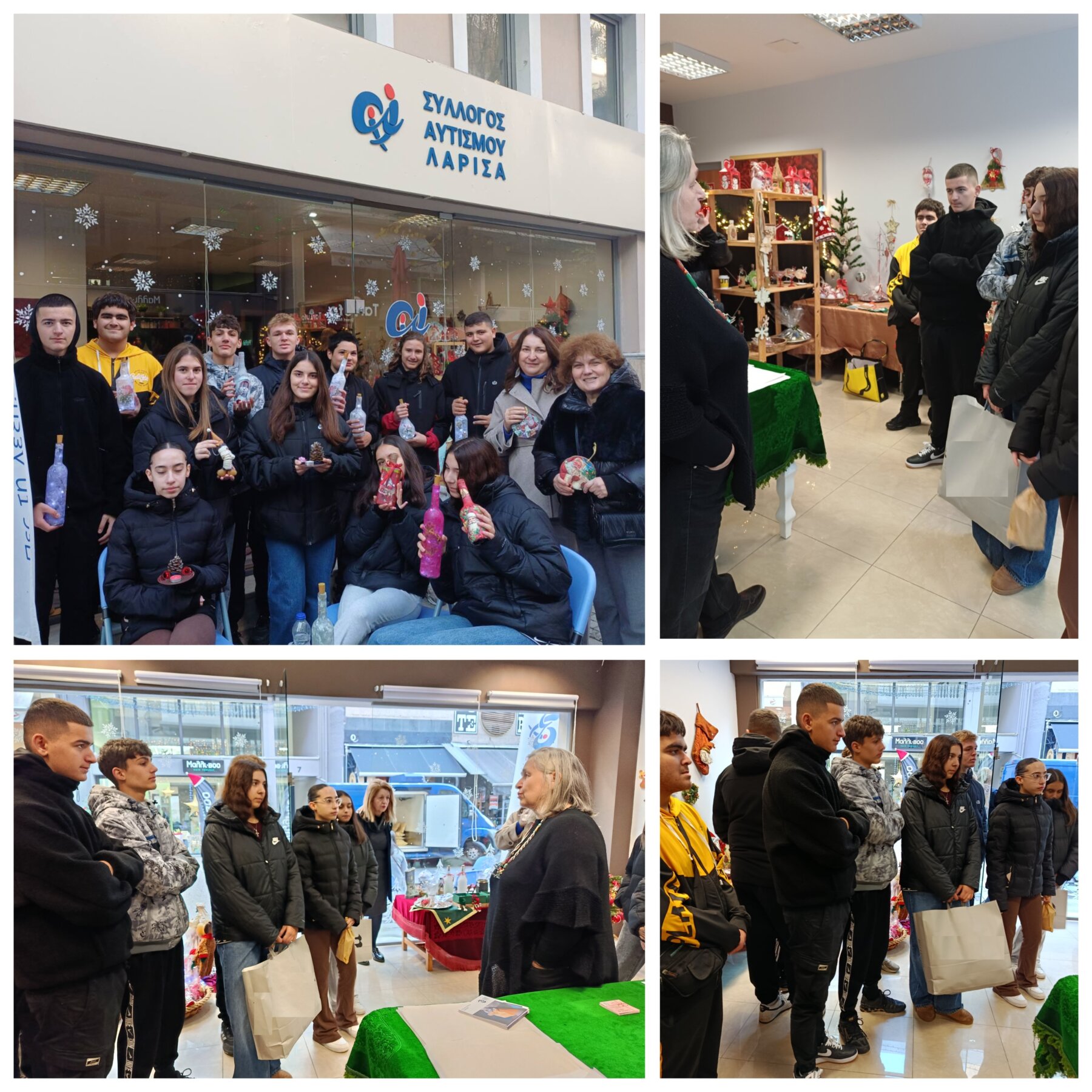 Στον Σύλλογο Αυτισμού οι μαθητές/τριες ενημερώθηκαν για τις δράσεις του Συλλόγου, τις δομές φιλοξενίας του και ευαισθητοποιήθηκαν σε θέματα αυτισμού. Ενίσχυσαν το Χριστουγεννιάτικο Bazaar προσφέροντας κατασκευές, στολίδια και κάρτες(από ανακυκλώσιμα υλικά) που έφτιαξαν οι ίδιοι.