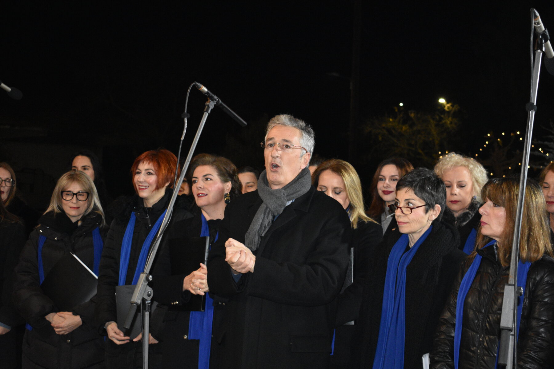 Έπειτα η γυναικεία χορωδία InDONNAtion καθώς και το φωνητικό σύνολο του Βερολίνου Sharena Gayda Berlin παρουσίασαν ένα άρτια επιμελημένο χριστουγεννιάτικο πρόγραμμα με την βραδιά να κορυφώνεται αμέσως μετά όταν και ο Περιφερειάρχης Θεσσαλίας κ. Δημήτρης Κουρέτας έδωσε το «σινιάλο» για την φωταγώγηση του Χριστουγεννιάτικου δέντρου και μοίρασε δώρα σε όλα τα παιδιά. Τέλος, τη βραδιά έκλεισε το «Λύκειο Ελληνίδων» με ένα σύντομο χορευτικό πρόγραμμα παραδοσιακών χορών ψάλλοντας κάλαντα από όλη την Ελλάδα.