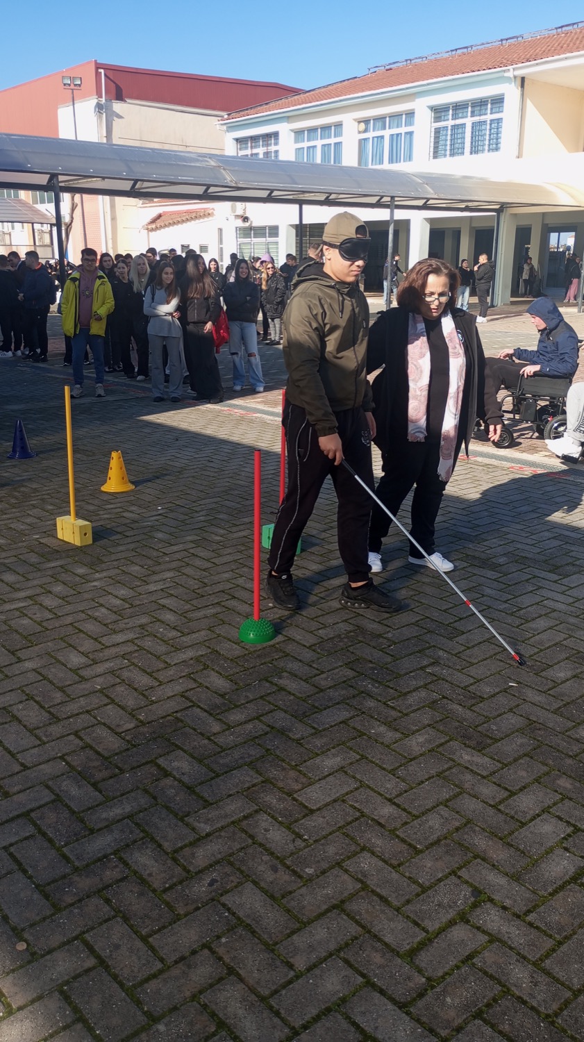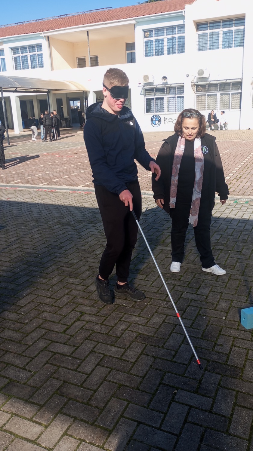 β. Με αφορμή την Παγκόσμια Ημέρα Ατόμων με Κινητικά Προβλήματα βρέθηκε στο σχολείο μας ο αντίστοιχος τοπικός Σύλλογος με την επωνυμία “ΠΡΟΣΒΑΣΗ¨. Τα μέλη και οι συνεργάτες του εν λόγω Συλλόγου έδωσαν την ευκαιρία στους μαθητές του σχολείου να χρησιμοποιήσουν τον αντίστοιχο εξοπλισμό και με βιωματικό τρόπο να αντιληφθούν τις δυσκολίες της καθημερινότητας των ατόμων με αναπηρία και ταυτόχρονα να κατανοήσουν σε βάθος την κοινωνική διάσταση του θέματος και τις επιπτώσεις στην ψυχική υγεία λόγω της απομόνωσής τους από τον κοινωνικό περίγυρο.