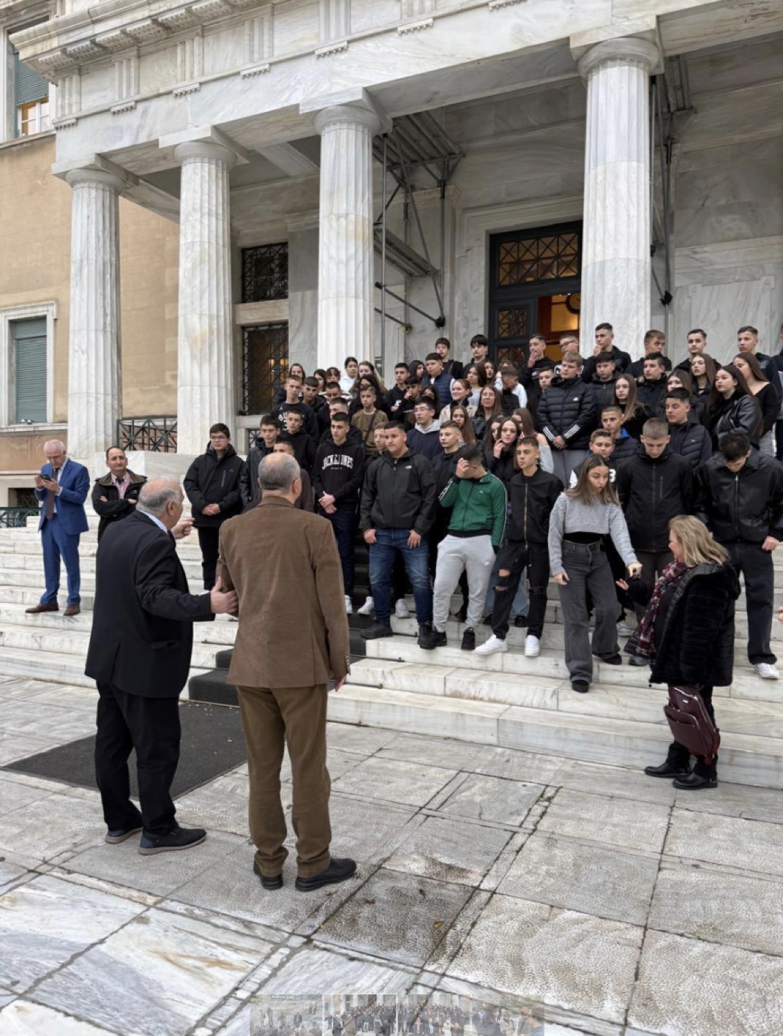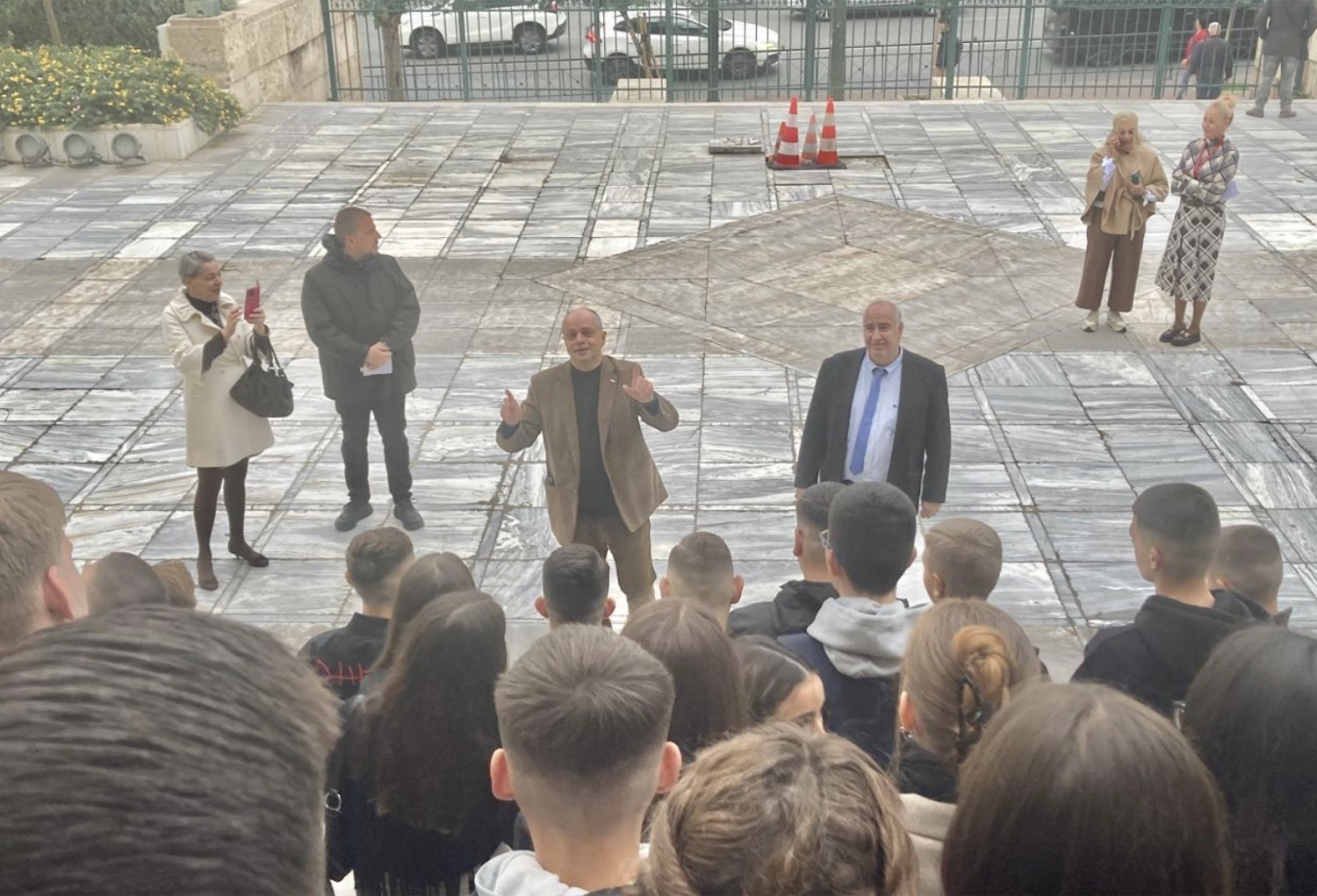 Στην υποδοχή και ξενάγηση των μαθητών συμμετείχε και ο Γενικός Γραμματέας του Υπουργείου Παιδείας, κ. Γιάννης Παπαδομαρκάκης, υπογραμμίζοντας έμπρακτα τη σημασία που αποδίδει η Πολιτεία στη σύνδεση της σχολικής κοινότητας με τους δημοκρατικούς θεσμούς.