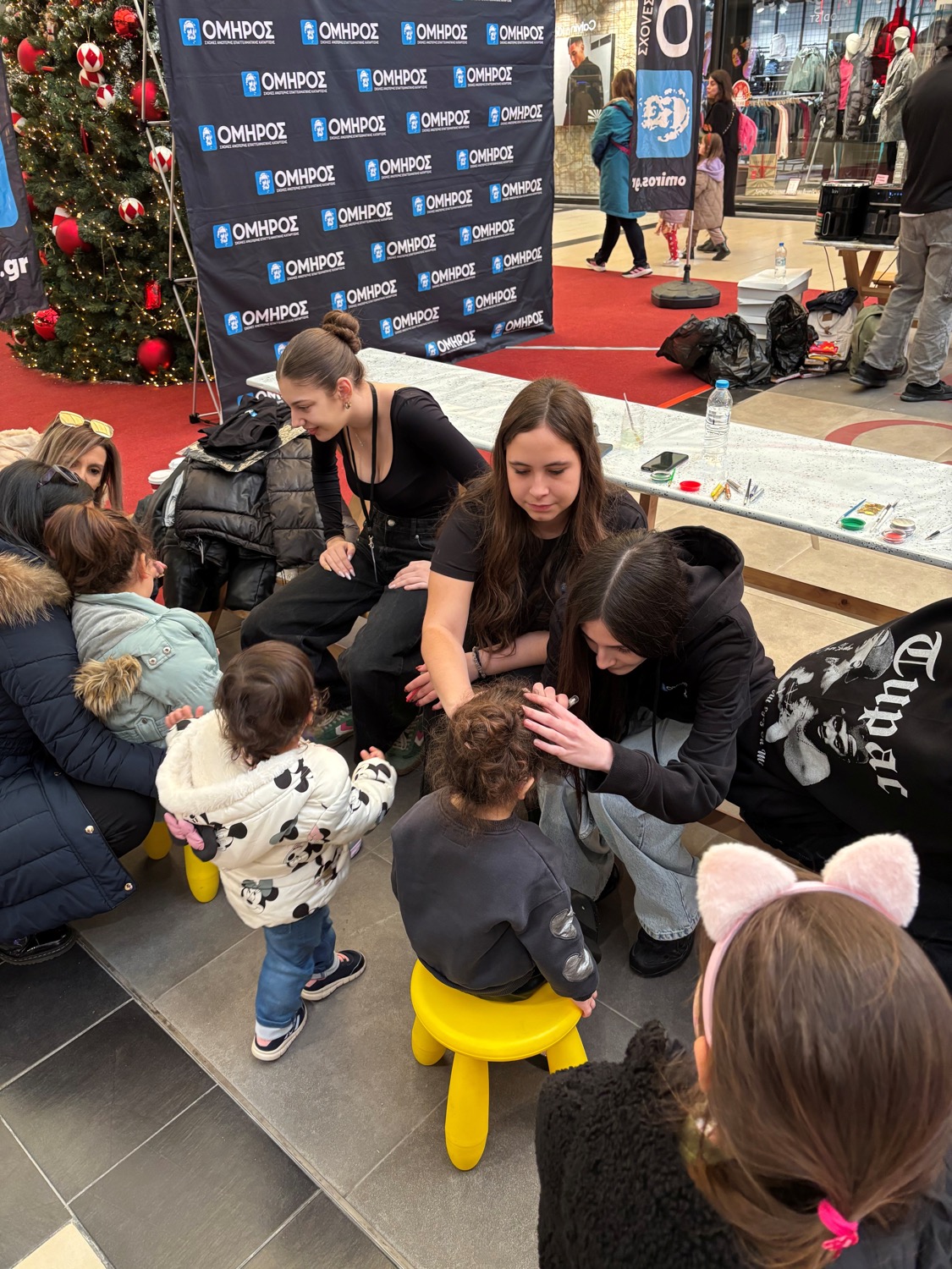 Το γιορτινό πρόγραμμα ολοκληρώθηκε την Κυριακή 14 Δεκεμβρίου με το χριστουγεννιάτικο εργαστήριο του Σ.Α.Ε.Κ. «ΟΜΗΡΟΣ». Τα Τμήματα Μαγειρικής και Ζαχαροπλαστικής έφτιαξαν μαζί με τα παιδιά μπισκότα και εντυπωσιακά μπισκοτόσπιτα, ενώ το Τμήμα Παιδαγωγικών χάρισε χρώμα και χαμόγελα μέσα από το δημιουργικό face painting. Γλυκίσματα και κεράσματα συμπλήρωσαν την εμπειρία, προσφέροντας μια Κυριακή γεμάτη γιορτινή γλυκύτητα.