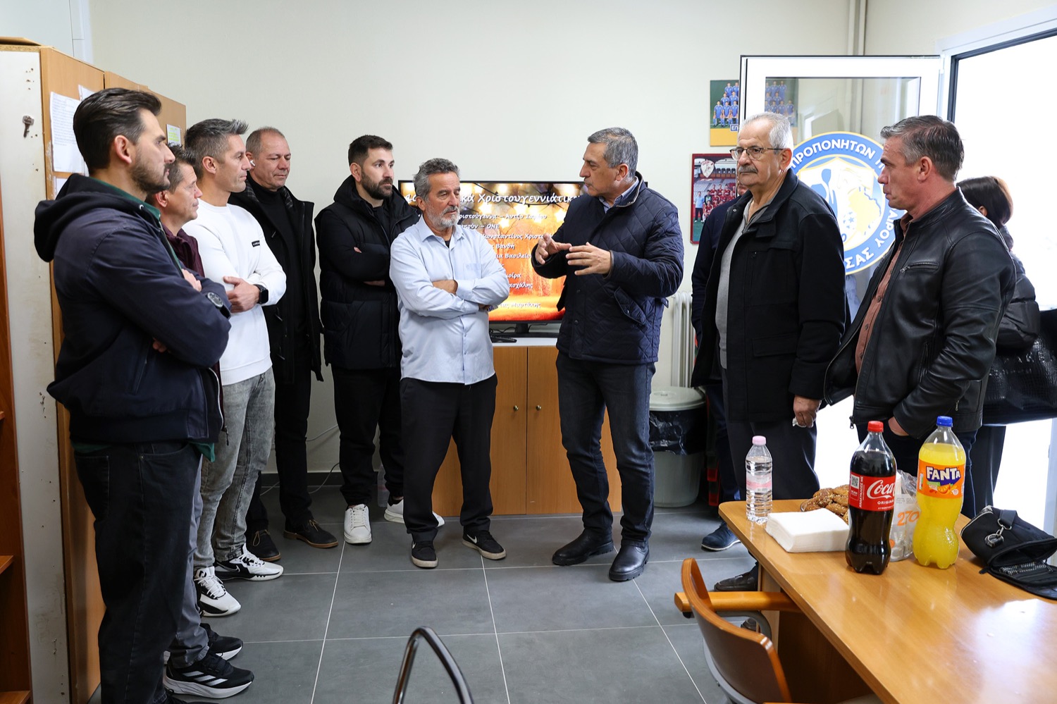 Η Διοίκηση του Συνδέσμου ευχαρίστησε θερμά τον κ. Κουρέτα για την βοήθεια του και τον κάλεσε όταν ο χρόνος του το επιτρέπει, να τους επισκέπτεται στο νέο γραφείο τους ώστε να παρακολουθούν μαζί διάφορες αγώνες ποδοσφαίρου.