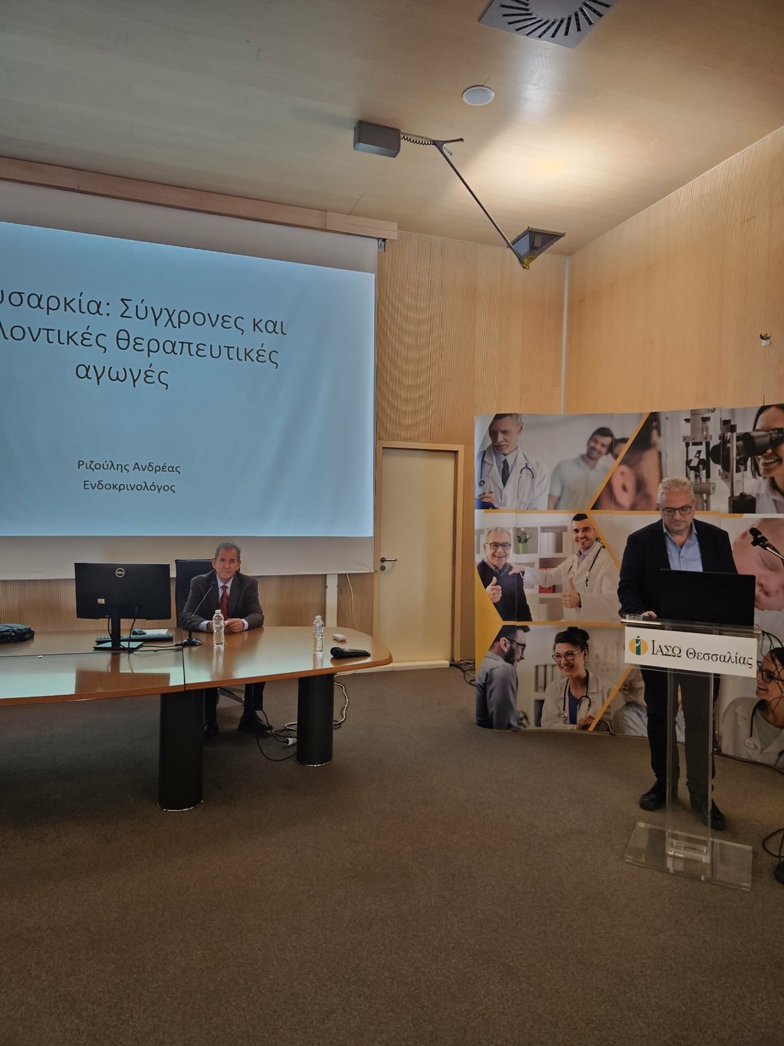 Με ιδιαίτερα αυξημένο επιστημονικό ενδιαφέρον πραγματοποιήθηκε στο ΙΑΣΩ Θεσσαλίας επιστημονική διάλεξη με θέμα «Παχυσαρκία: Τελευταία δεδομένα – σύγχρονες και μελλοντικές θεραπευτικές αγωγές», στο πλαίσιο του κύκλου «Επιστημονικές Διαλέξεις 2025–2026». Κεντρικός ομιλητής ήταν ο Ενδοκρινολόγος και Επιστημονικός Συνεργάτης του ΙΑΣΩ Θεσσαλίας Ανδρέας Ριζούλης, ενώ τη συζήτηση συντόνισε ο Ομ. Καθηγητής Ρευματολόγίας Λάζαρος Σάκκας, Επιστημονικά Υπεύθυνος Ρευματολογικού Τμήματος και Πρόεδρος της Επιτροπής Ηθικής και Δεοντολογίας του ΙΑΣΩ Θεσσαλίας.