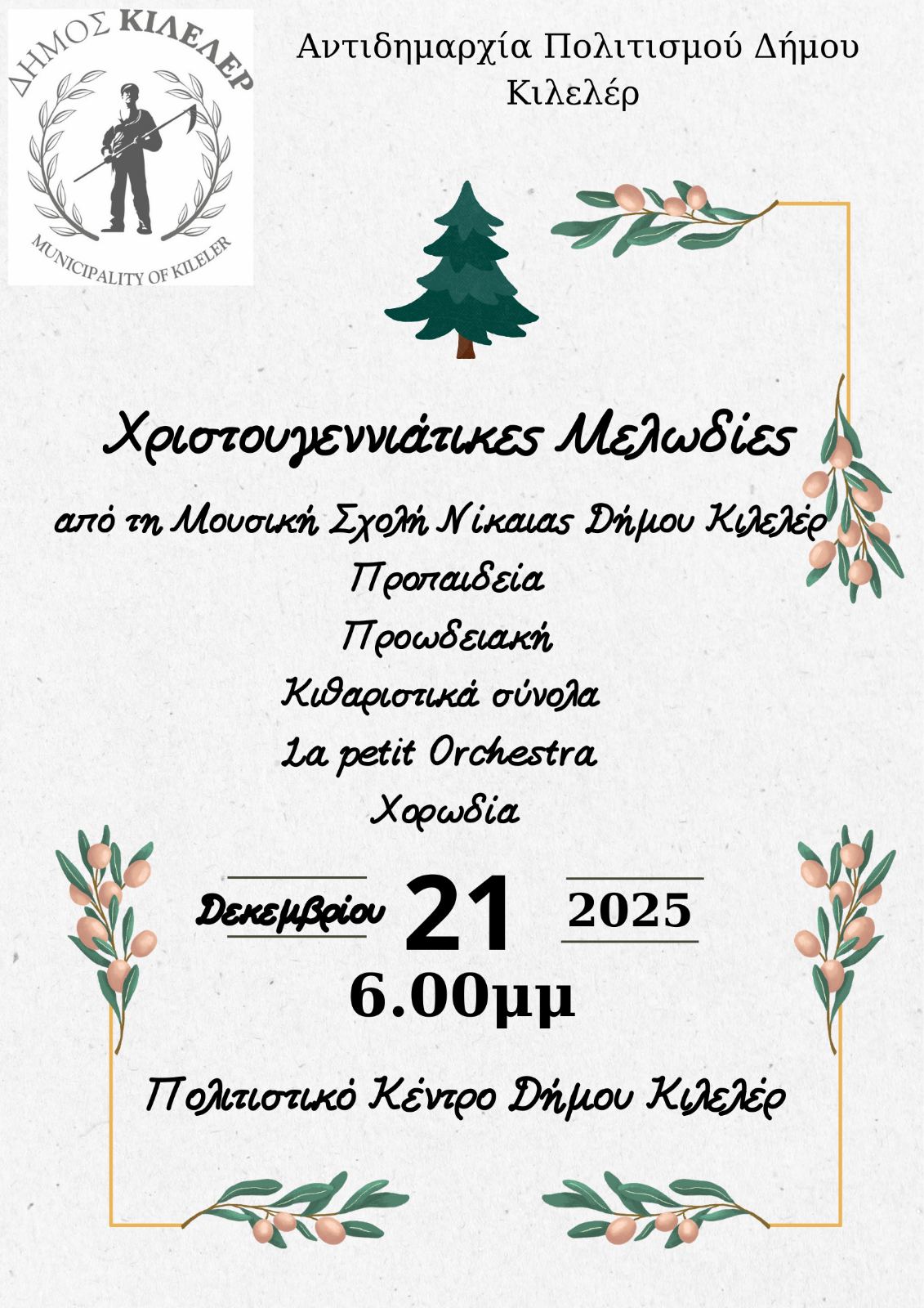 Μια μουσική εκδήλωση θα πραγματοποιηθεί την ερχόμενη Κυριακή 21 Δεκεμβρίου 2025 στις 6:00 μ.μ. στο πολιτιστικό κέντρο Νίκαιας Δήμου Κιλελέρ υπό την αιγίδα της Αντιδημαρχίας Πολιτισμού. Η Μουσική Σχολή Νίκαιας Δήμου Κιλελέρ υποδέχεται τη γιορτινή περίοδο με τη Χριστουγεννιάτικη συναυλία των μουσικών συνόλων της. Στην έναρξη της εκδήλωσης οι μικροί μαθητές της μουσικής προπαίδειας και της προωδειακής θα μας ταξιδέψουν στο μαγικό κόσμο του Καρυοθραύστη! Χιονονιφάδες, ζαχαρωτά, μεταλλόφωνα και παιδικά χαμόγελα θα γεμίσουν τη σκηνή και θα μεταδώσουν στο κοινό τη μαγεία των Χριστουγέννων. Στη συνέχεια τα κιθαριστικά σύνολα της σχολής και η La petite orchestra θα παίξουν χριστουγεννιάτικες μελωδίες μέσα σε μια ατμόσφαιρα ζεστασιάς και χαράς ενώ οι σπουδάστριες της τάξης φωνητικής θα ερμηνεύσουν ύμνους στο πνεύμα των ημερών. Τέλος, η παιδική χορωδία της σχολής θα τραγουδήσει χριστουγεννιάτικα κάλαντα από όλη την Ελλάδα μεταφέροντας μηνύματα αγάπης, ελπίδας και αισιοδοξίας στις καρδιές όλων. Για τη διεξαγωγή της εν λόγω εκδήλωσης σημαντική είναι η συμβολή και η άριστη συνεργασία με την Αντιδήμαρχο Πολιτισμού, Αθλητισμού, Παιδείας , Υγείας και Κοινωνικής Πολιτικής κ. Σέβης Λαδοπούλου – Χατζητσοπάνη