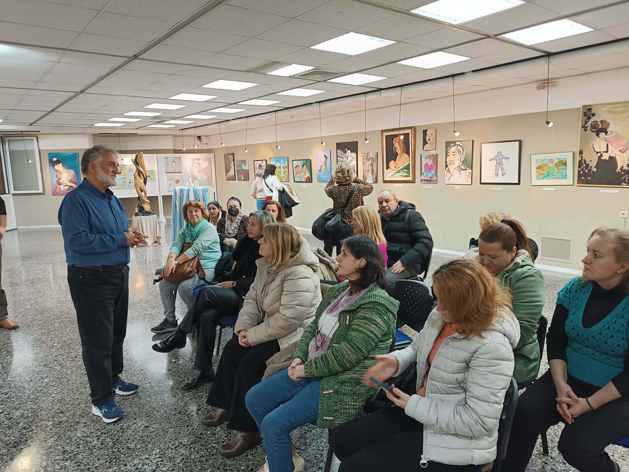 Αρχικά, ο Πρόεδρος του Συλλόγου Εικαστικών κ. Γιάννης Γεωργιάδης υποδέχτηκε τους εκπαιδευομένους και έκανε μια γενική εισήγηση για την όλη έκθεση. Στη συνέχεια, τους επισκέπτες ξενάγησαν στον χώρο κάποιοι από τους καλλιτέχνες, οι οποίοι ένας ένας χωριστά παρουσίασαν τα έργα τους, μίλησαν συνοπτικά για την έμπνευσή τους, τις τεχνοτροπίες που ακολούθησαν και τους χρωματικούς συνδυασμούς που χρησιμοποίησαν. Οι εκπαιδευόμενοι ενθουσιάστηκαν από τα έργα, έβγαλαν φωτογραφίες, συγχάρηκαν τους παριστάμενους καλλιτέχνες, ενώ έλυσαν πολλές απορίες τους με τη συζήτηση που είχαν μαζί τους.